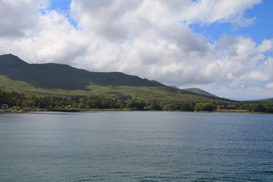 entering loch scresort with kinloch castle in the distance