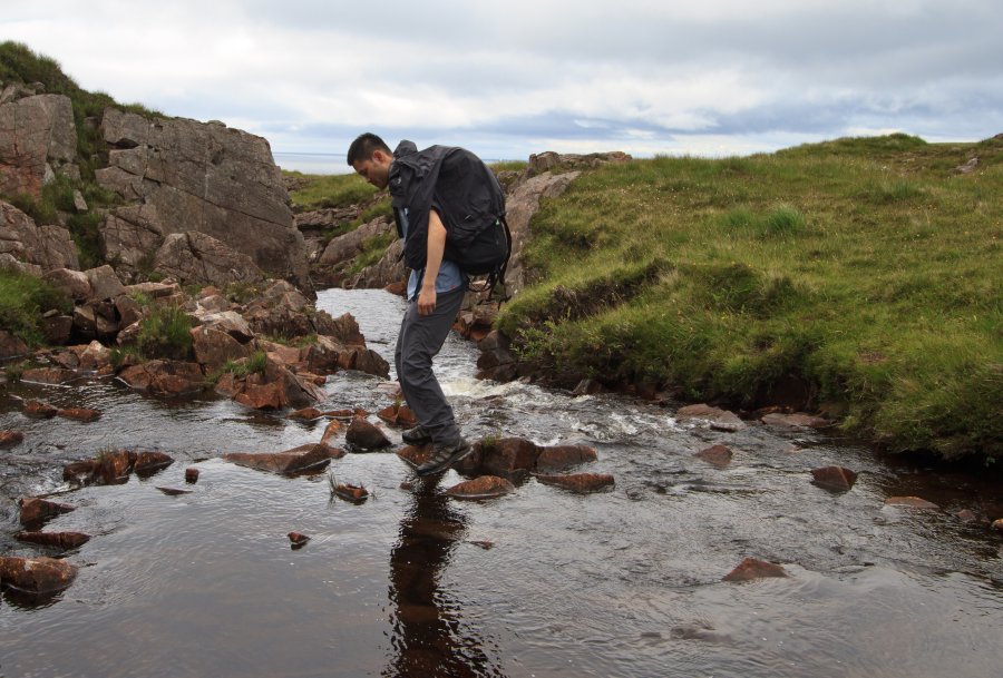 ALAN CROSSING THE GLEN SHELLESDER BURN. THE NEXT MORNING WE HAD TO FIND ANOTHER WAY ACROSS DUE TO THE OVERNIGHT RAIN.