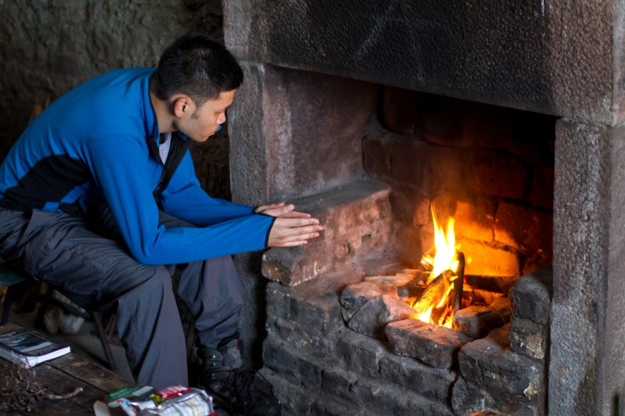 JOB 1 - GET THE FIRE GOING. PLENTY OF DRIFTWOOD HAD BEEN COLLECTED BY PREVIOUS VISITORS