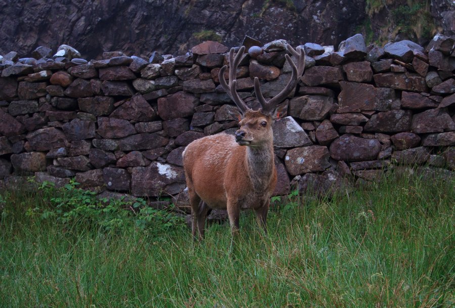 we reached the coastline and dropped down into guirdil bay. a stag was resting outside the bothy and just like the other wildlife, didn't seem at all interested in us.