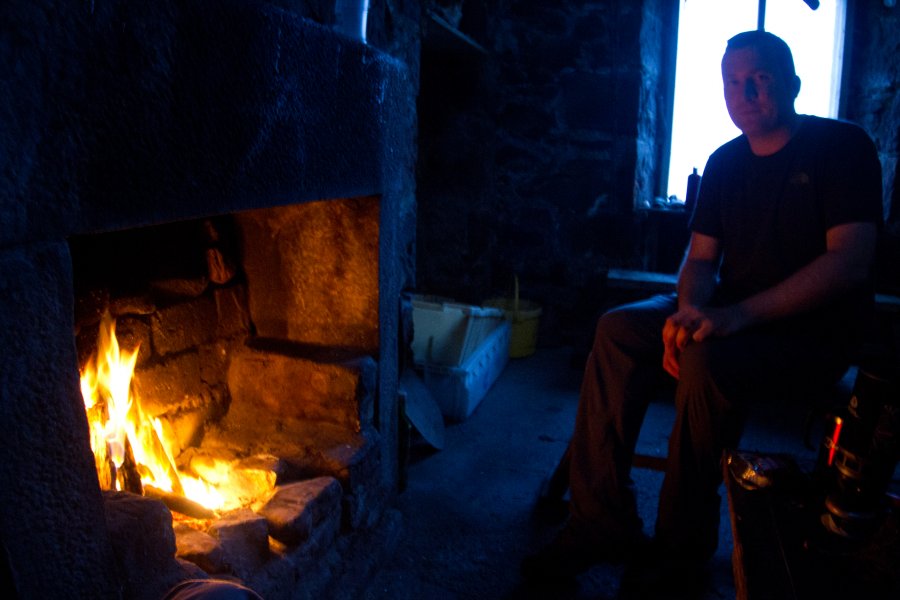 shortly after us, steve arrived. in march, steve started walking from his home in hastings (south of england) and had just come from the isle of skye. steve has been visiting bothies, fixing hooks and doing the odd bit of maintenance if required. he reports his visits to the mountain bothies association if there is any significant issues. we asked steve when he would be going home. he was a little unsure but said 'possibly in october'. he told us a little about his travels and his nights spent in bus shelters and was very interested on our plans.