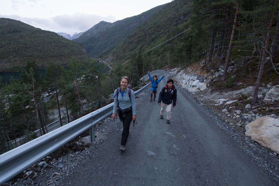 We had discovered the night before that the two guys who were sharing the accommodation with us were also heading to Trolltunga the next day, so we offered them a ride. Arthur, a French man from Nice couldn’t understand why we were setting our alarms for 0445, so we explained that in order to beat the queues, you have to get there before everyone else. Fumiyoshi (Fumi) Arthur’s Japanese friend just smiled and nodded. We never knew whether he was just easy going or if what we were saying was lost in translation.