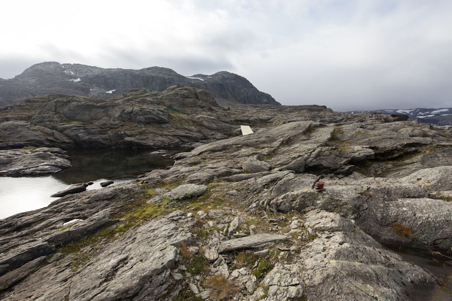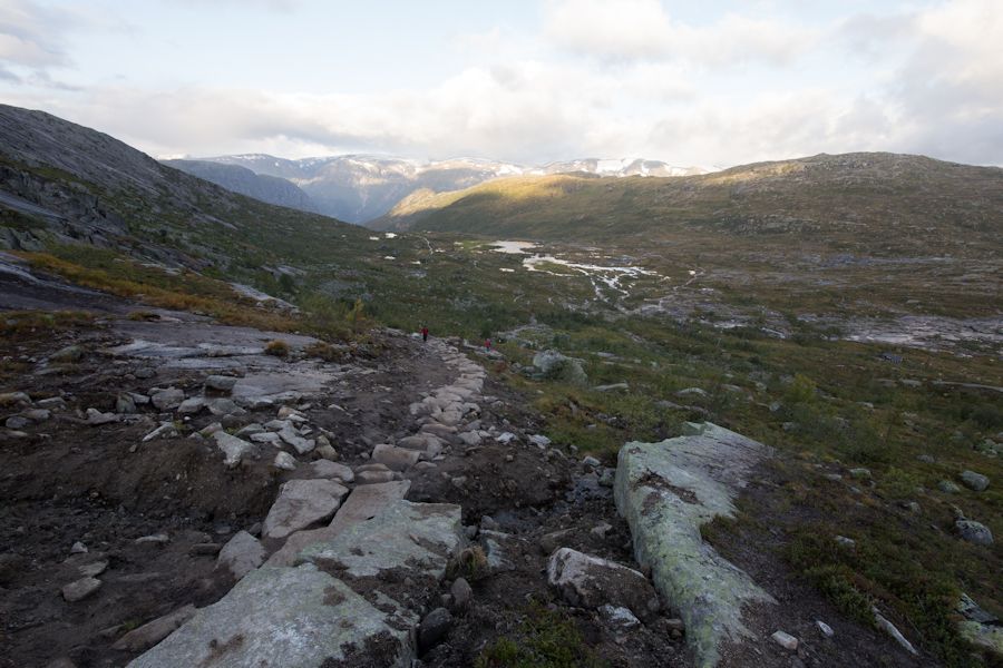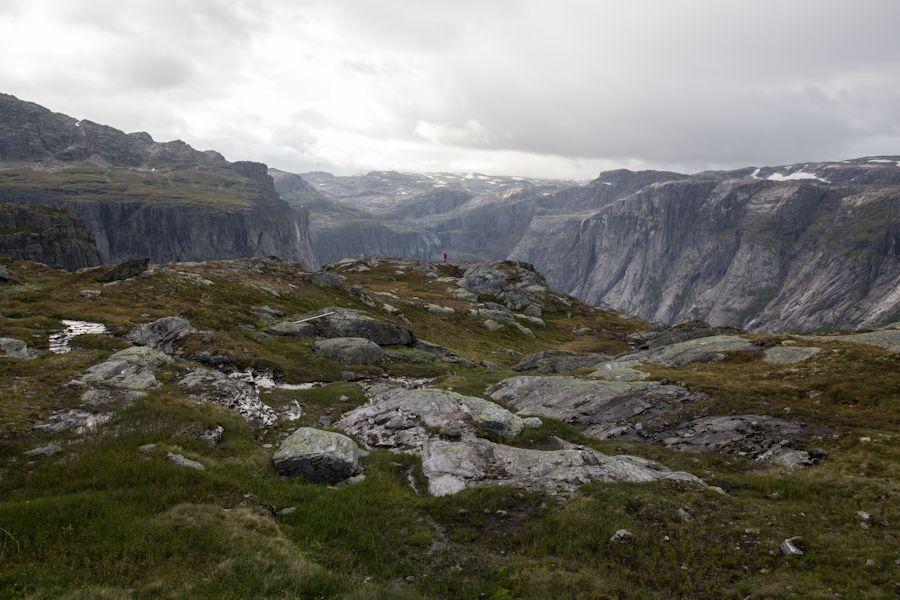 trolltunga is over there. over that bridge and towards the back right. a great landscape of solid rock, which is completely unlike the mountainous parts of england when it is a lot looser.
