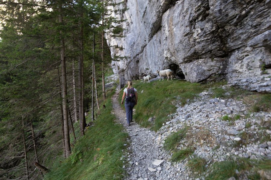 OFF THE MAIN TRAIL NOW AND FOLLOWING A DIFFERENT TRAIL DOWN TO GRINDELWALD. WE MADE A FUNNY MISTAKE WITH A SIGNPOST BY THINKING 'HOUR' MEANT 'STATION'. DONT ASK!!