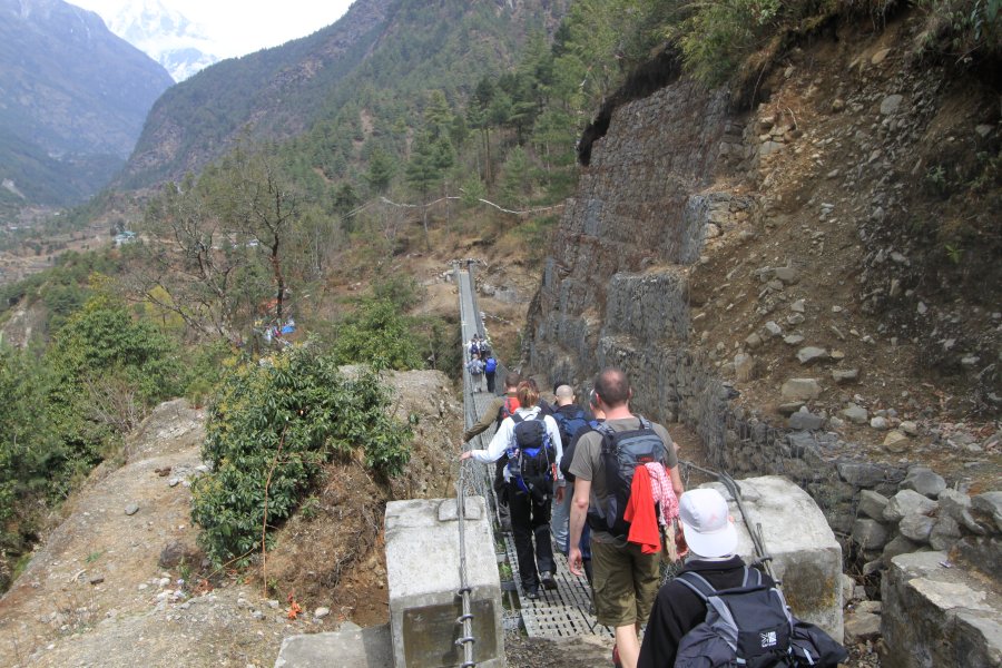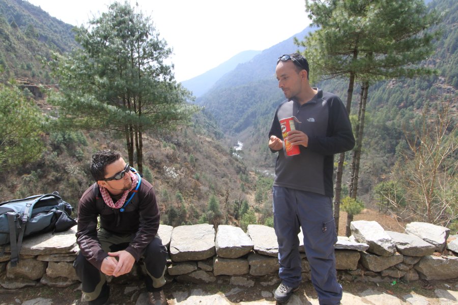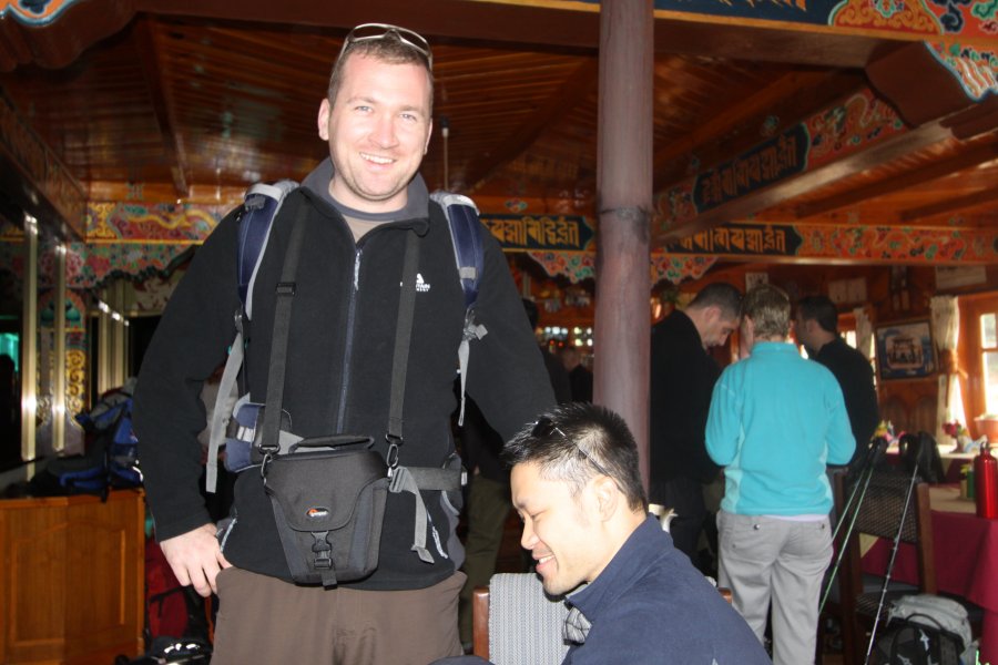 Day 1 - We started with a 30 minute flight out of Kathamdu to Lukla (2860m). We landed on one of the world's shortest and steepest runways but it was suprisingly smooth although the plane had to slow down extremely quick. Shortly after arriving we met our guides and the porters who would be carrying the main bulk of our kit. It was surprising to see how much these guys would be carrying. I was relieved that I only packed what was essential. Unfortunately Michelle was already feeling light headed due to the altitude. The trek started with an easy descent of approx 250m (3-4hr) to our first overnight stop at the small village Phakding (2610m).