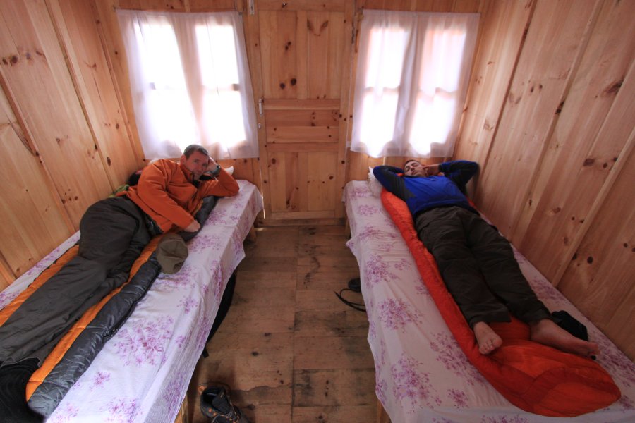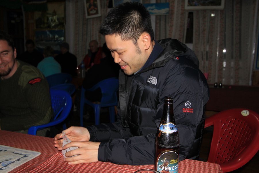 That evening back at the tea house was a cold one. We huddled around the tables playing cards, drinking Everest Beer and we also tried part fermented Firewater which is a strong spirit made using Millet seeds. Saying our huts were drafty was an understatement but they were clean and the beds were reasonably comfortable.