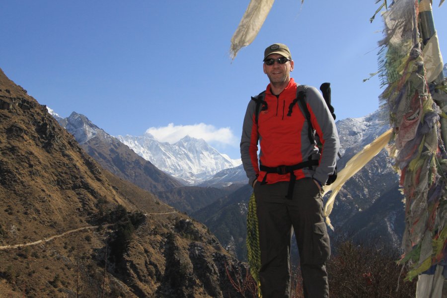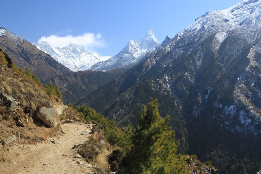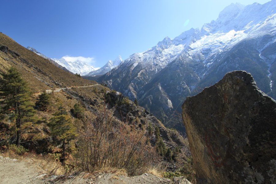 Leaving Namche and continuing along the trail we had much clearer views of Mount Everest. Unfortunately we had to descend to the bottom of the valley for lunch and then take a 600m steep climb up to Tengboche. It seemed that the sun was particularly harsh today and as we climbed it wasn't long until my headache returned. I was taking a mix of ibuprofen and paracetamol but they weren't doing anything for me.