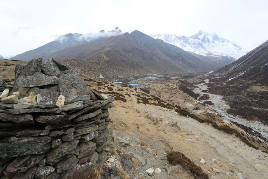 Next stop off would be Dingboche. The route today was a very gradual climb but still had a few blowy moments. Paul was really struggling after a night of sickness and Geordie was really suffering aswell. By lunchtime both of them were looking dreadful. It wasn't long after lunch that my headache came back. The higher I went the more painful it seemed to get. At one point I got pain in my ears. It felt like my brain was swelling and trying to squeeze out of my ear canals. I slowed down a lot and it wasn't long before i saw Geordie approaching from behind. He looked terrible! Neil and Gavin then approached, they had me laughing the rest of the way to Dingboche. Pretty much as soon as i stopped walking my headache vanished (just like yesterday) and i spent the evening playing cards. That night Paul passed out.