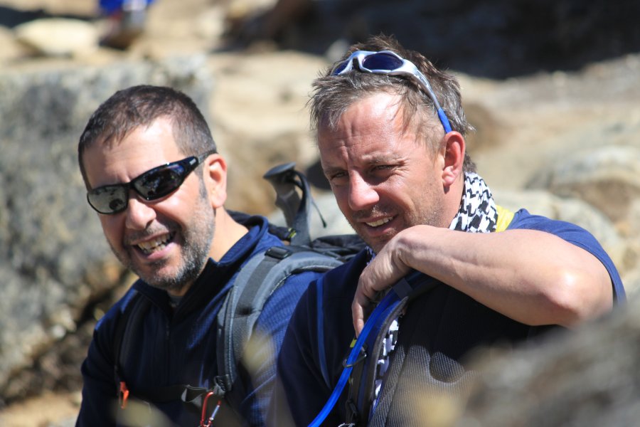 Day 6 (Acclimatization Day) - Our main goal today was to hopefully prepare our bodies to 5000m. Geordie and Paul T would be resting from this excursion today due to their weakened states yesterday. I think this may have something to do with our guides umming and arghing over whether we would hit 5000m that day. Within about 15 minutes Alan had decided to head back down. He had been suffering since day 2 and was feeling very weak. The rest of us pushed on. The sky was remarkably blue and the sun was beating down hard on us. We took plenty of stops to mess around. Tashi lead a challenge to climb a shear rock wall which he made look simple. Not simple for anyone else though.