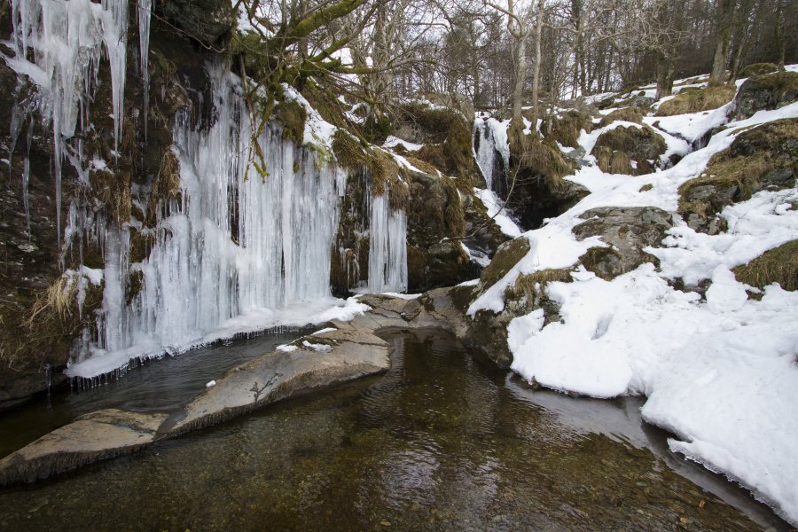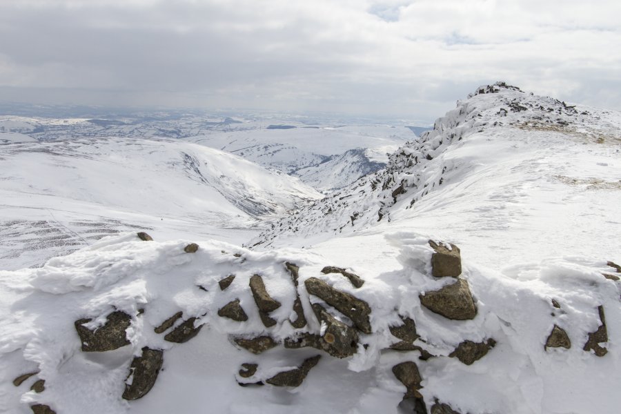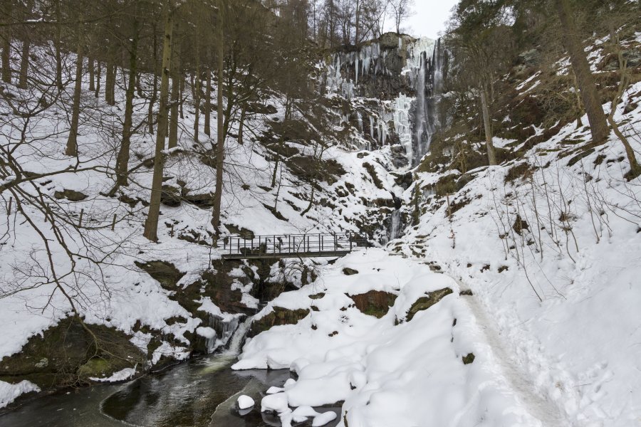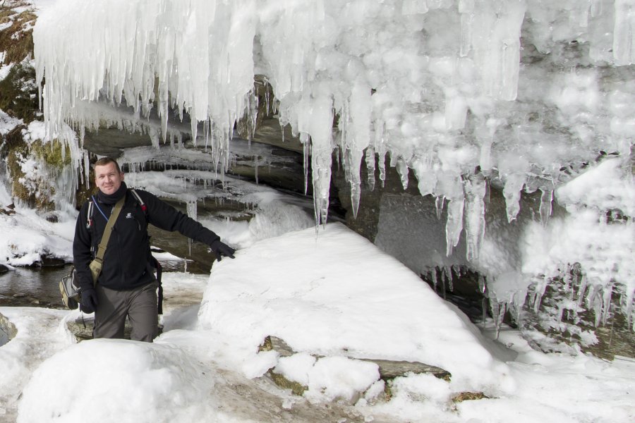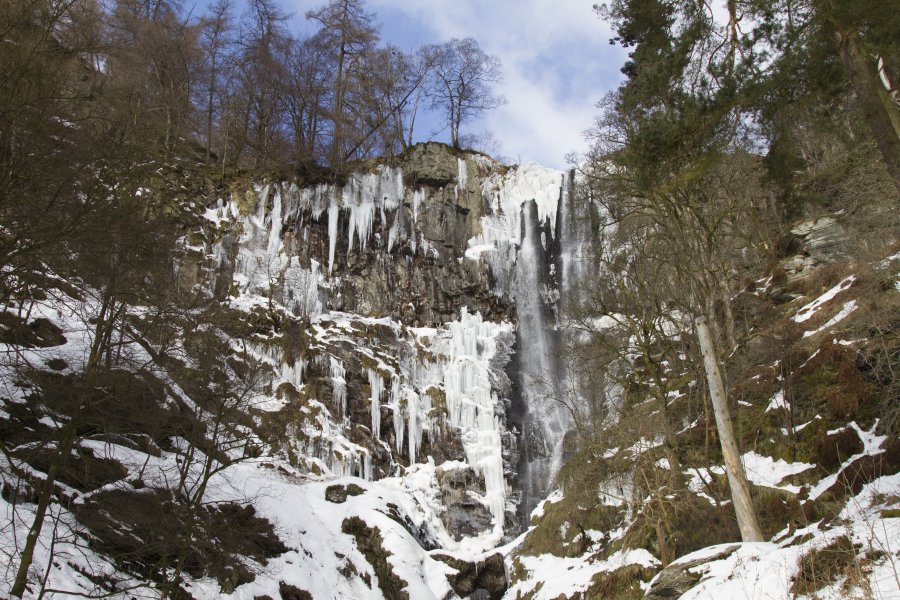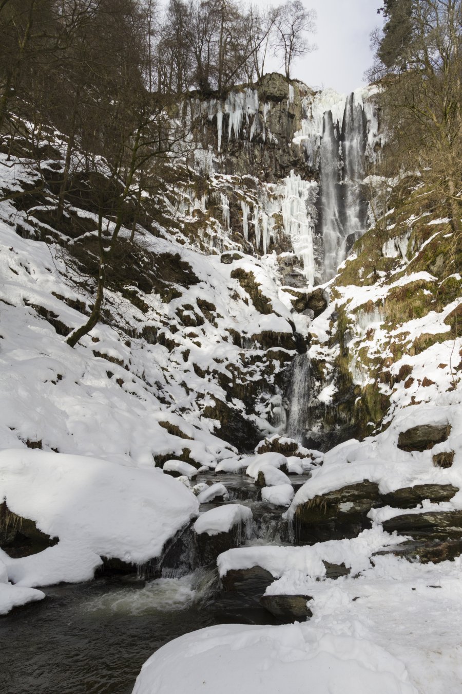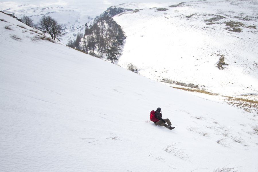 Once we arrived and laced up, we explored the falls with extreme care. It was ridiculously slippery above and below with huge icicles and verglas covered rocks. The spray from the waterfall had created some impressive ice formations but also made the falls a hazardous attraction. After some time fooling around we headed up into the Berwyn hills. The recent snow had made walking the slopes surprisingly easier due to the hard compacted snow over the usually boggy sections. It also provided us the opportunity for some bum sledging (see photos).