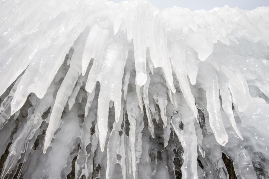 LOADS OF ICICLES CREATED FROM THE WATERFALL BACK SPRAY