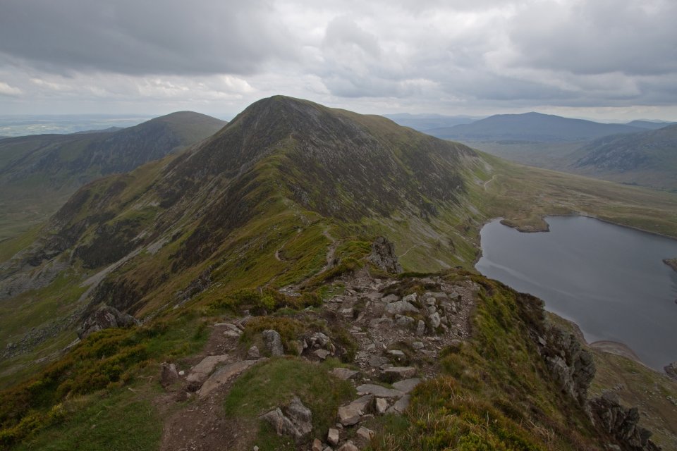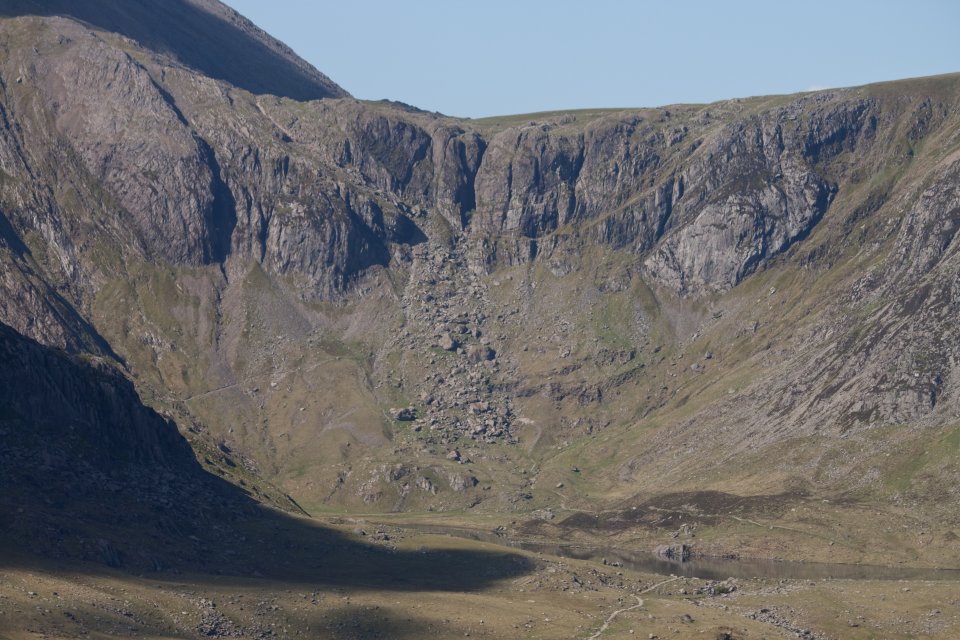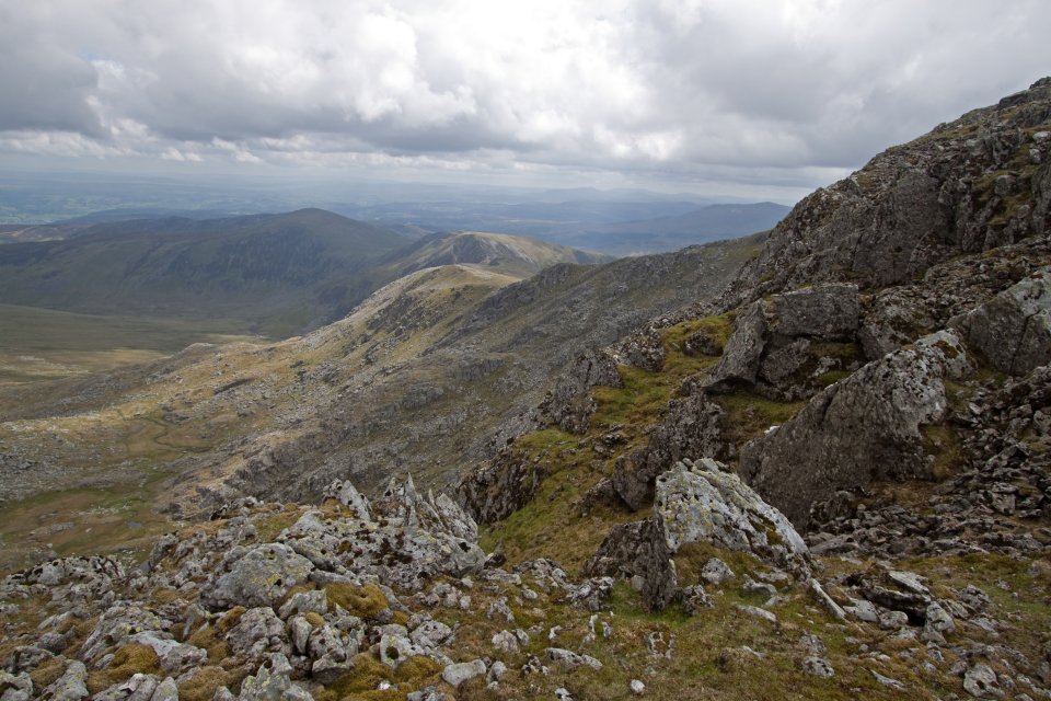 Looking down the Cwm Pen-Llafar valley from the ridge
