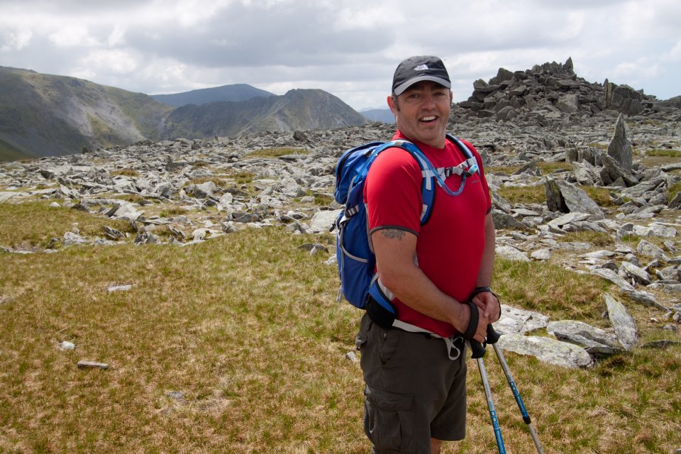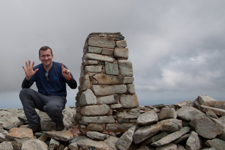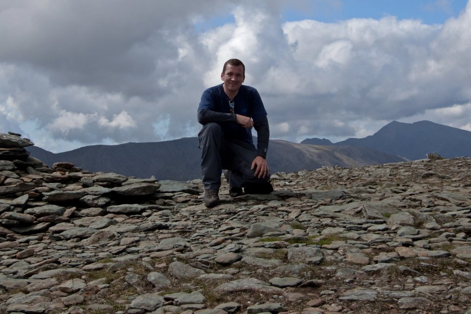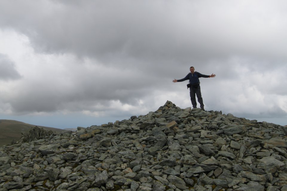 Geordie on the summit of Carnedd Dafydd (1044m)