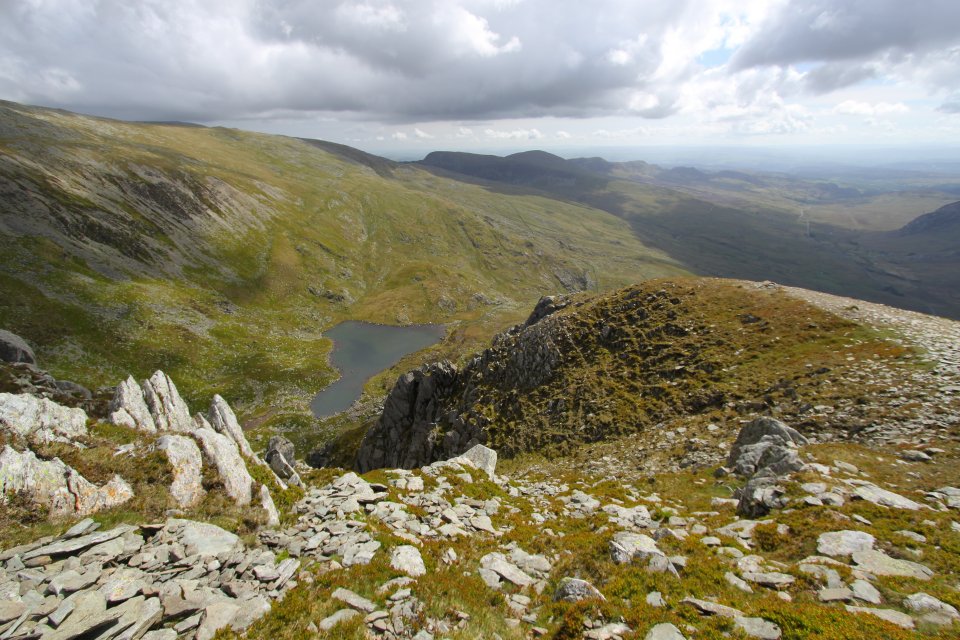 Looking back from the ridge. Ffynnon Lloer (tarn)