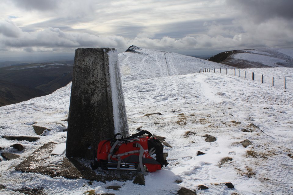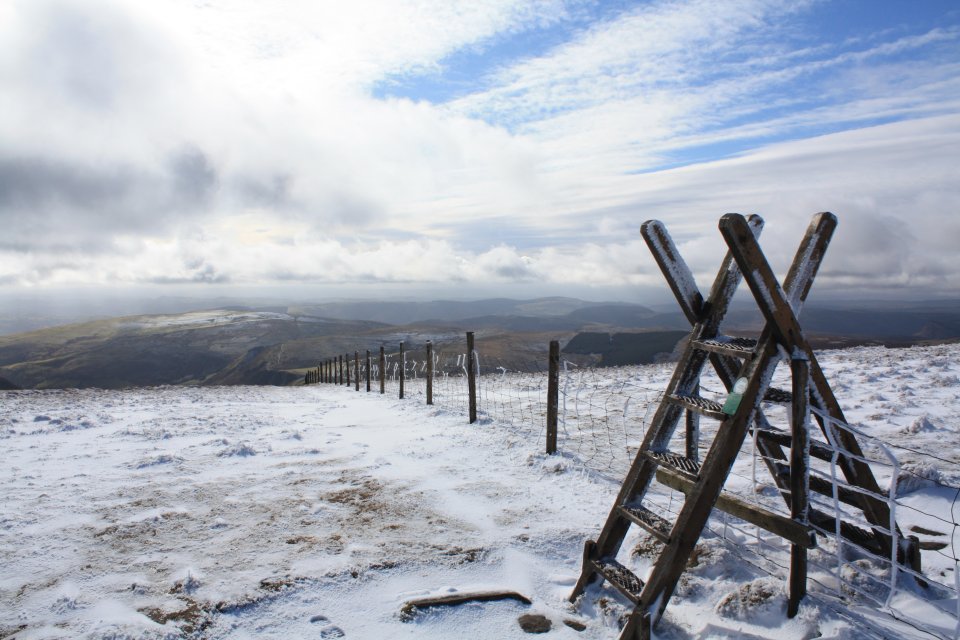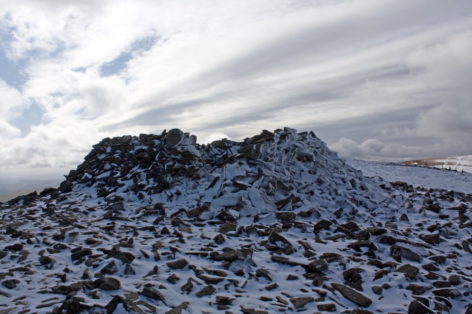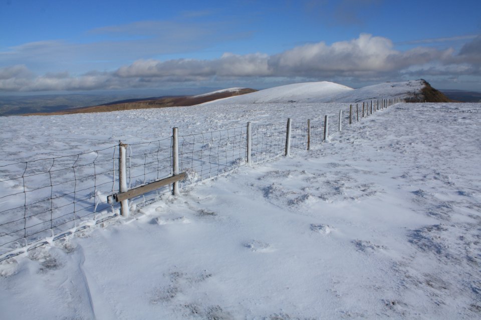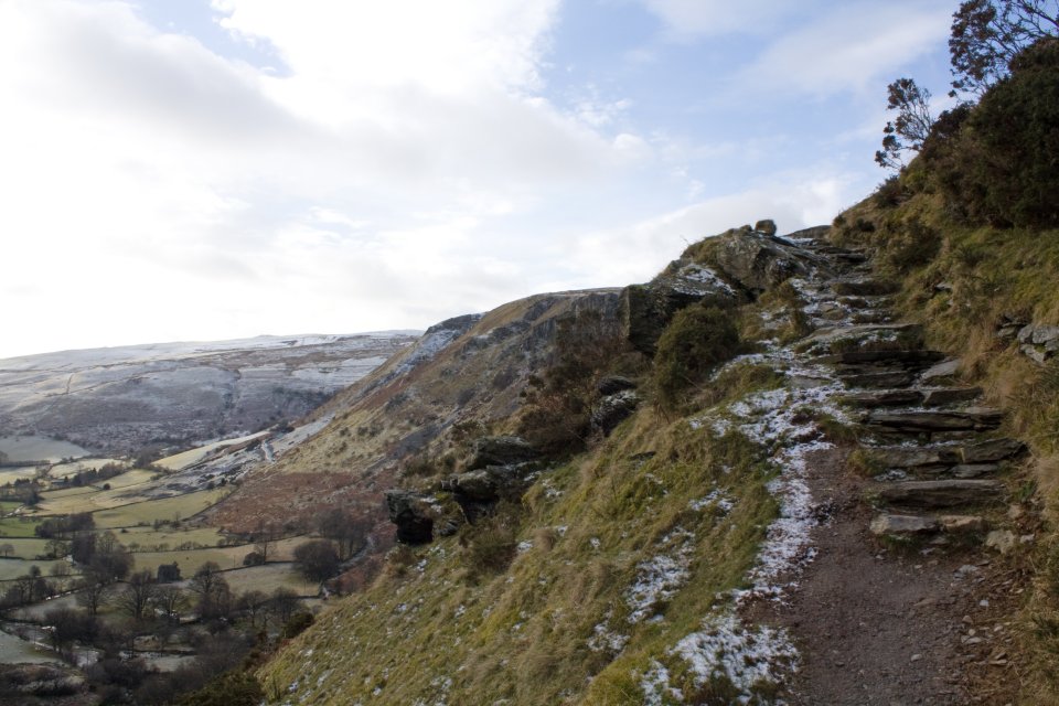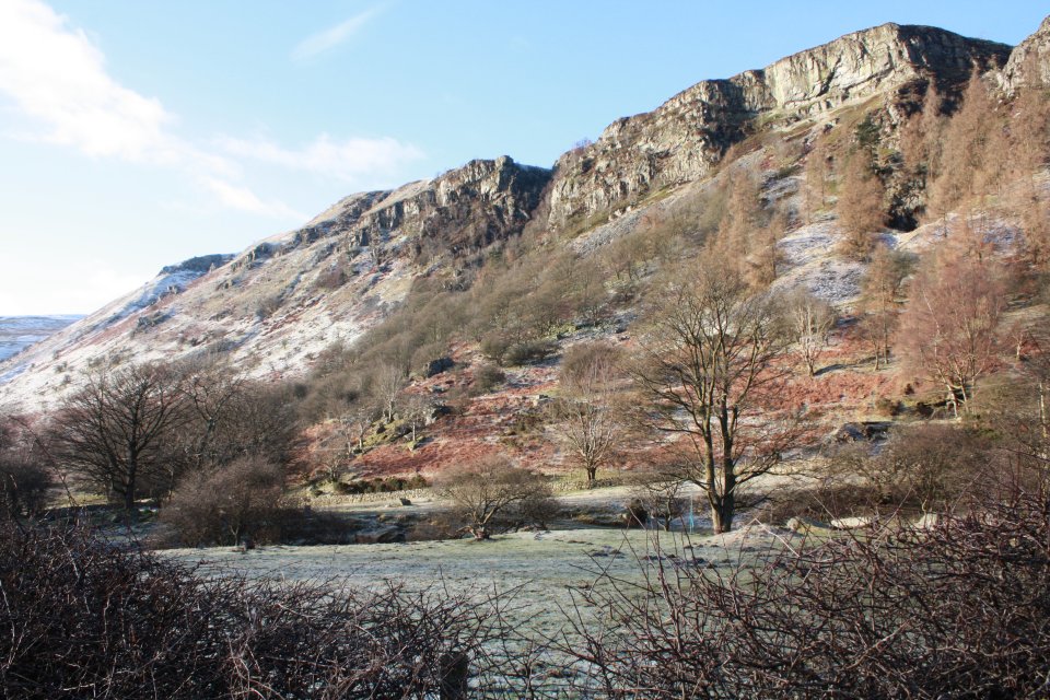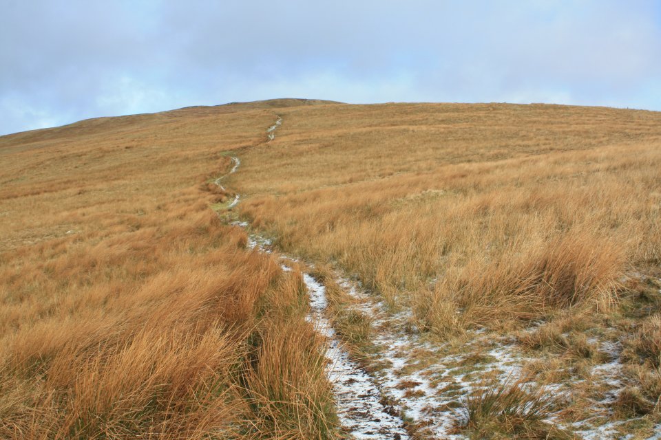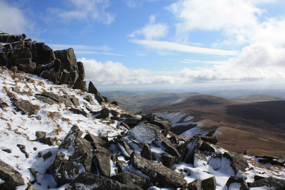 Looking down from the Cadair Berwyn ridge to the tarn of Llyn Lluncaws