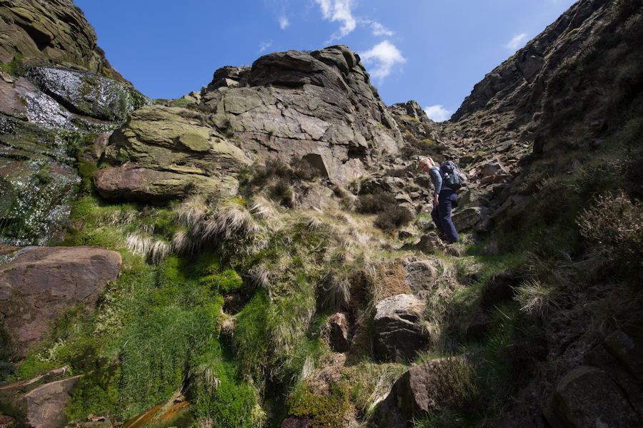 Plenty of times I've been to Bleaklow and looked down into Yellowslacks brook wondering whether it would be a good route to ascend through. Today I found out that it could actually be the best route onto Bleaklow. In terms of navigation it's pretty easy too. Just need to find a good section for dropping into the clough as it's quite steep but then it couldn't be more straight forward. You will see there is a small tricky scramble section over a waterfall that we avoided but apart from that it isn't too challenging. It's a beautiful route onto Bleaklow and a very quiet one too!