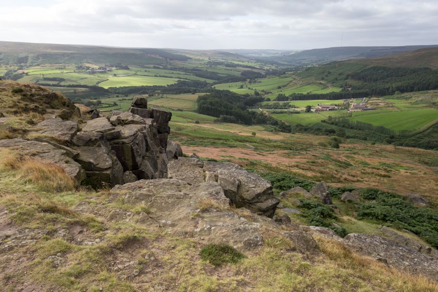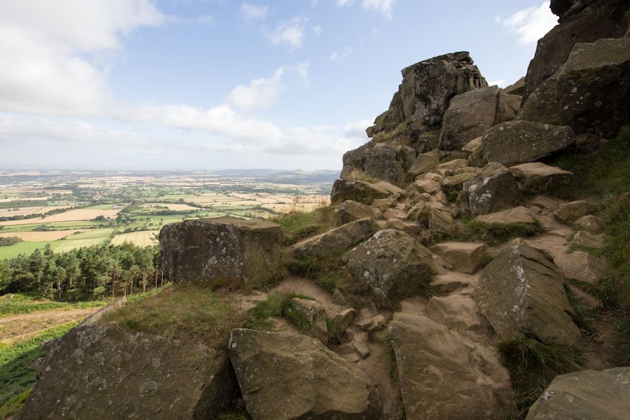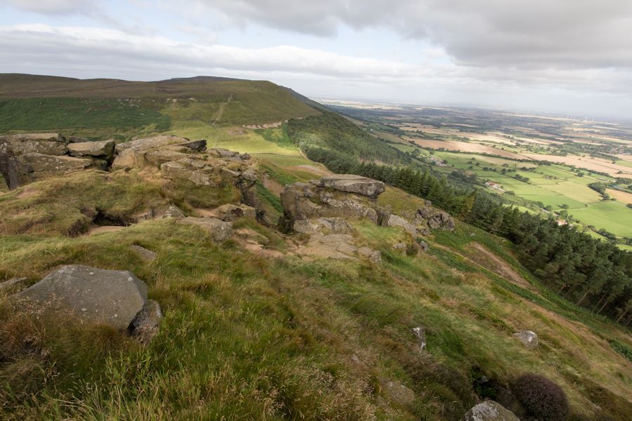I found this route online and as there weren't that many photos to look at, I really wasn't sure what to expect. The reason I chose this route was because there was one thing i knew i would get and that is something it seems the North yorkshire Moors seems to lack... rock! I set off nice and early and i must have only seen a total of 4 people throughout the walk. Cold Moor was easily crossed apart from some minor bog hopping at the start and then it wasn't long before I was on the Cleveland Way looking out towards rOSEBERRY tOPPING FROM THE EDGE OF THE MOORS. tHE GORGEOUS VIEWS CONTINUED AS I TRAVERSED THE MUCH NEEDED ROCKY ELEMENT THAT IS hASTY bANK. I then descended and crossed over to Urra Moor before arriving back in the village of Chop gate. A great little walk with superb views, moorland and some rock!!
