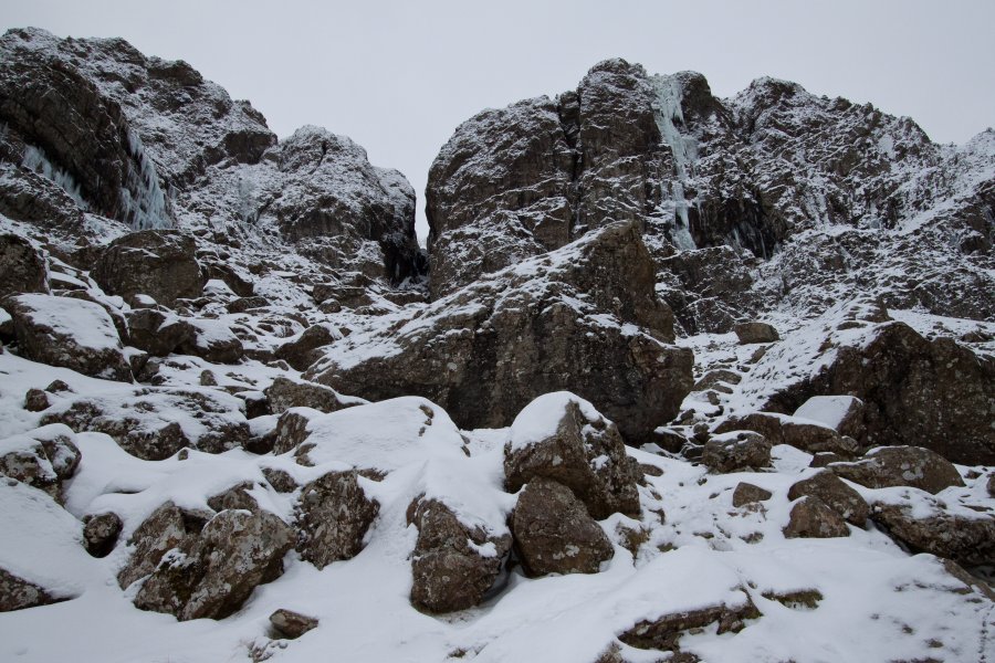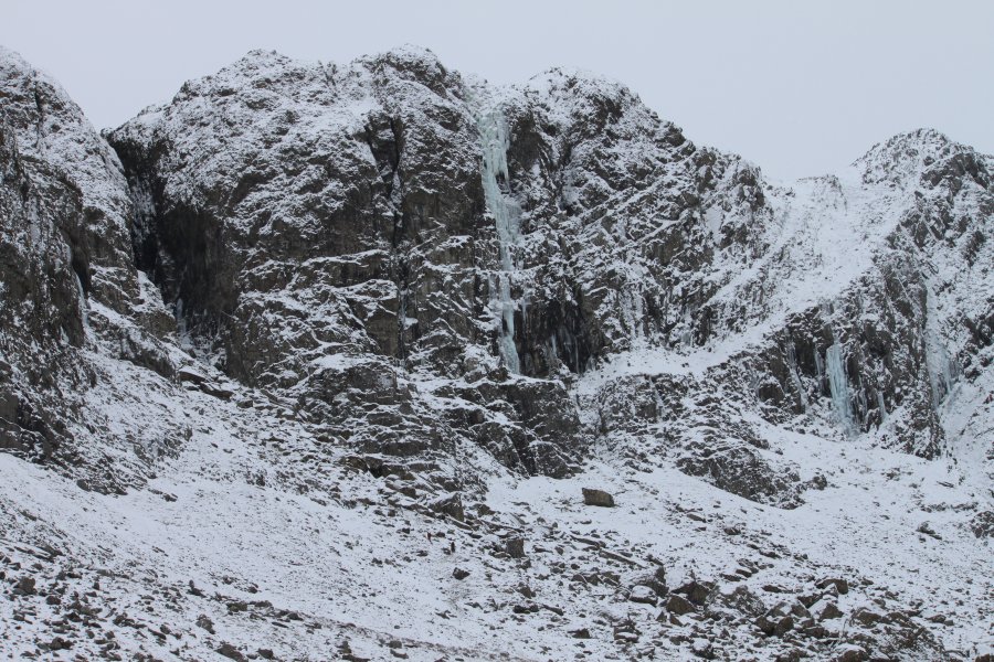 Our ascent route 'Devil's Kitchen is the rock fall in the middle