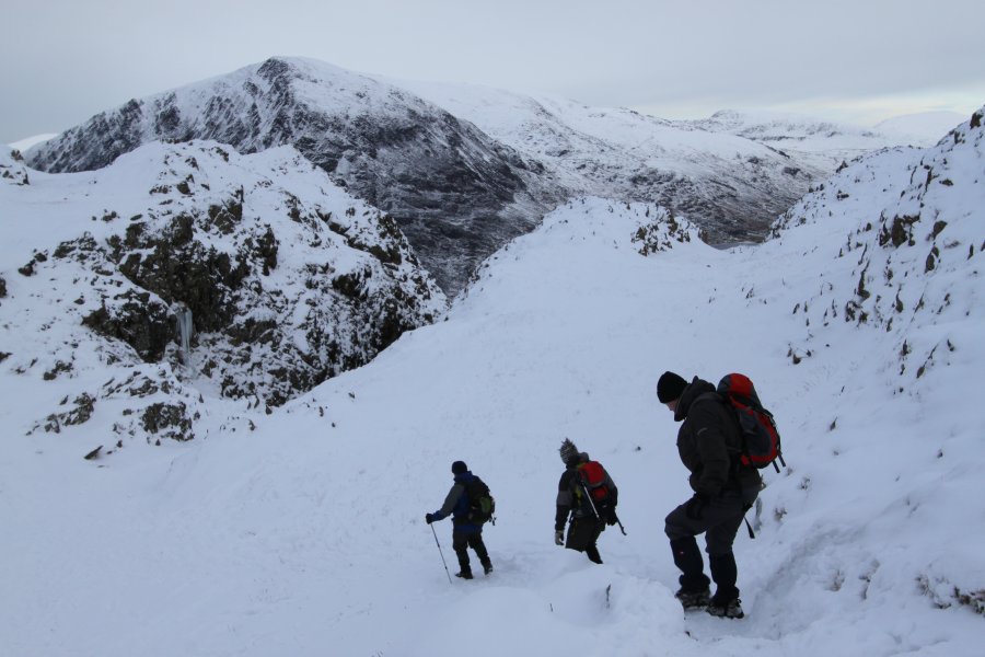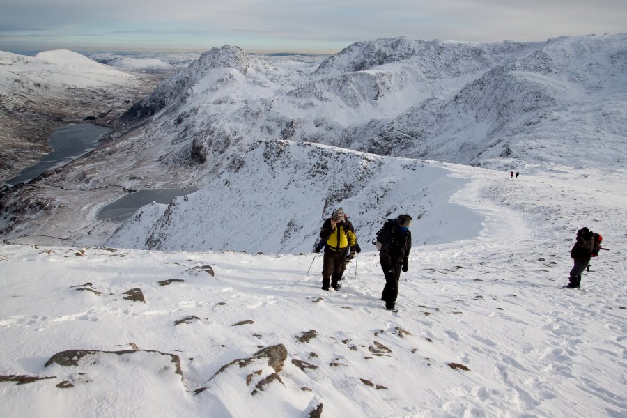 Slow going slog in the deep snow across the top towards Y Garn