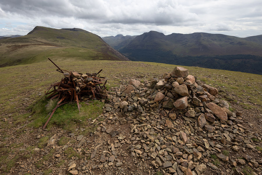starling dodd (633m) . a stone cairn and a metal mangle. art?