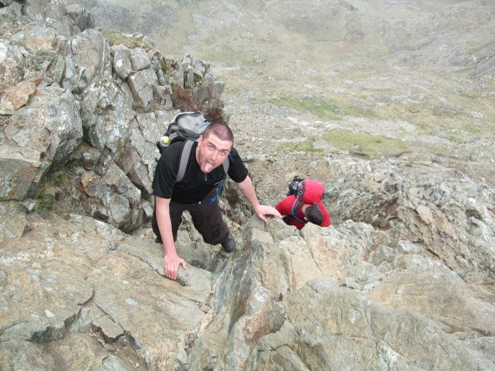 Scrambling up Crib Goch (taken by Geordie)
