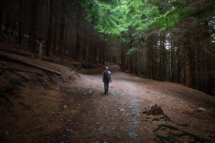 about 2km of gorgeous woodland following 1 simple path