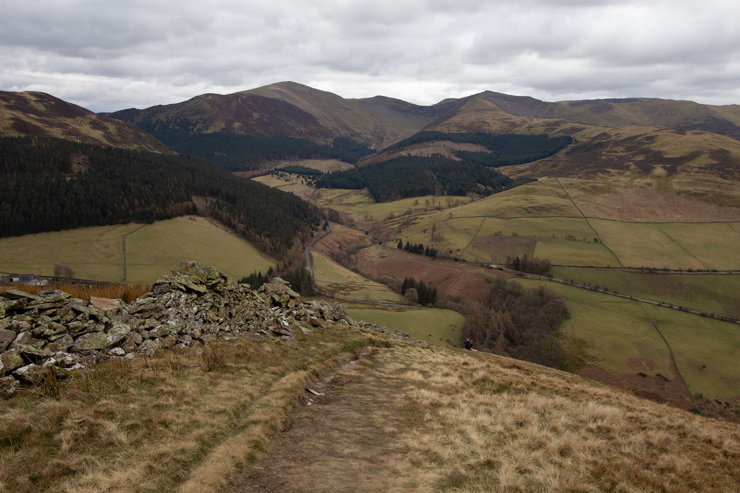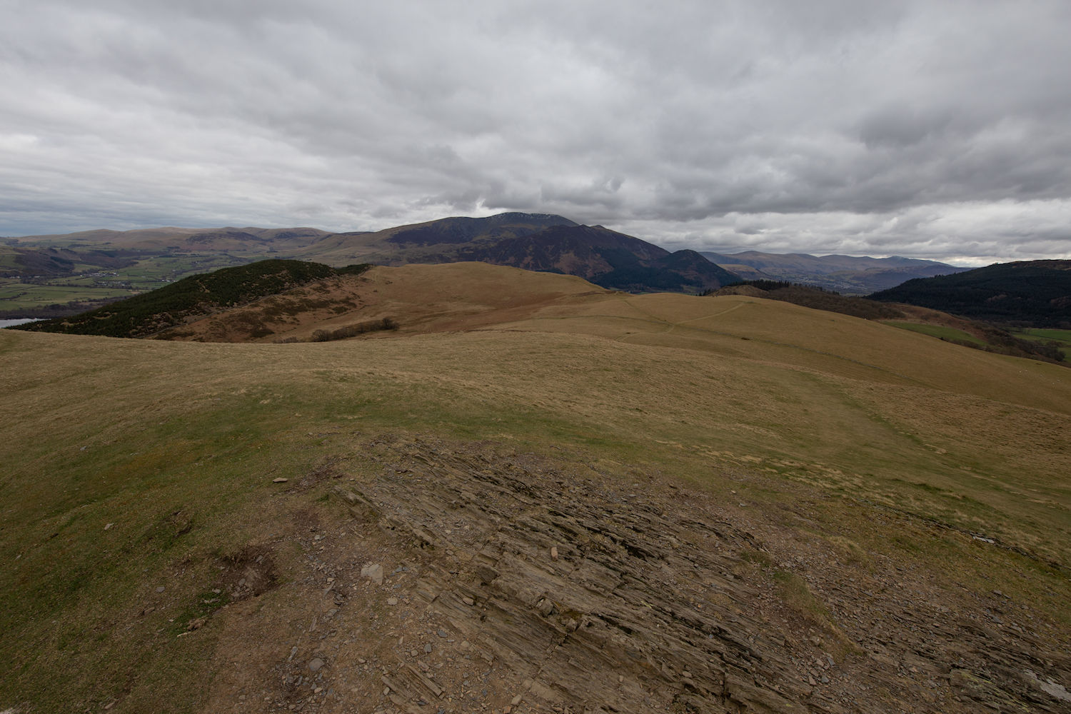 View from the summit, looking out to the Skiddaw range and Dodd.