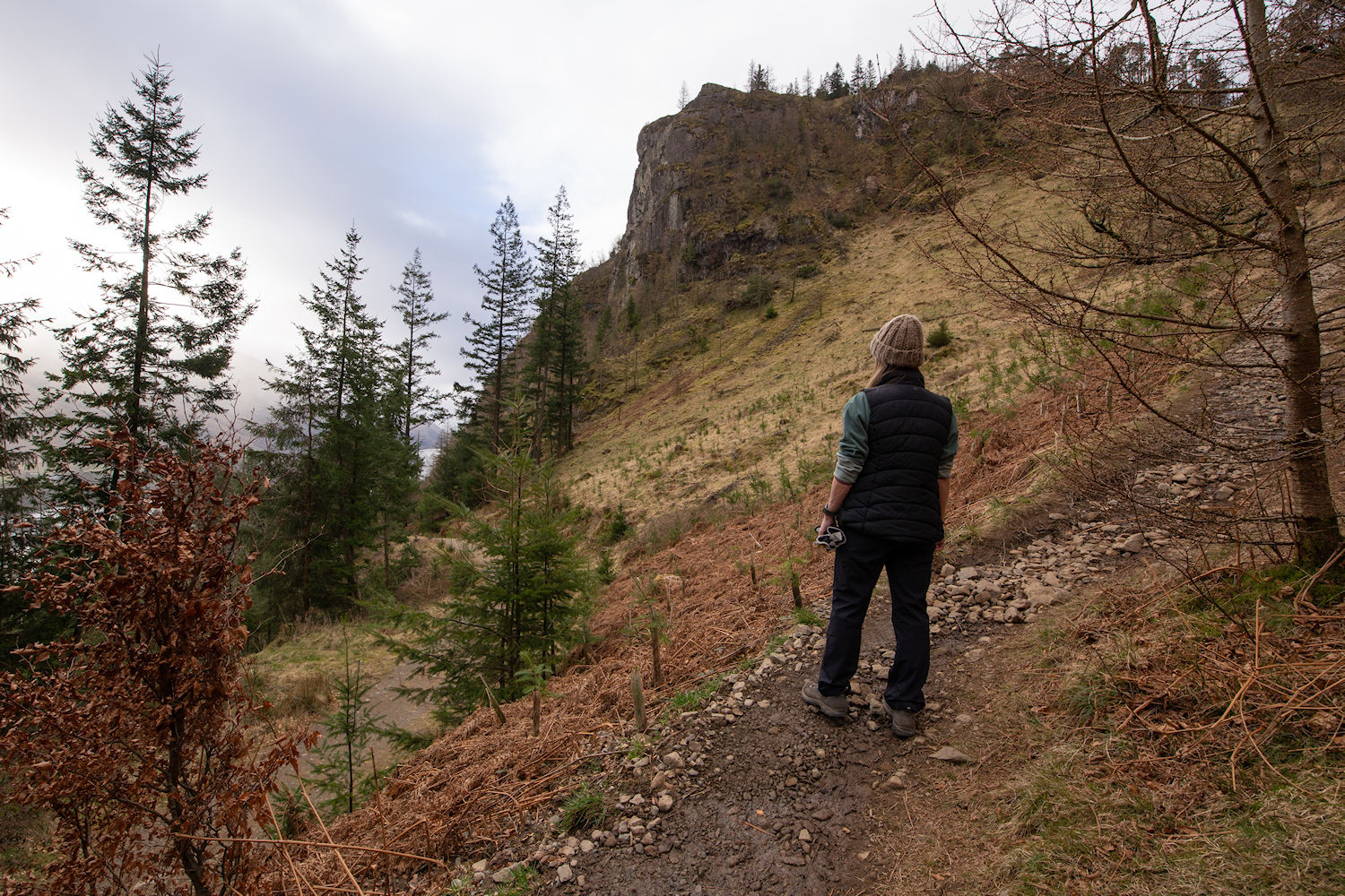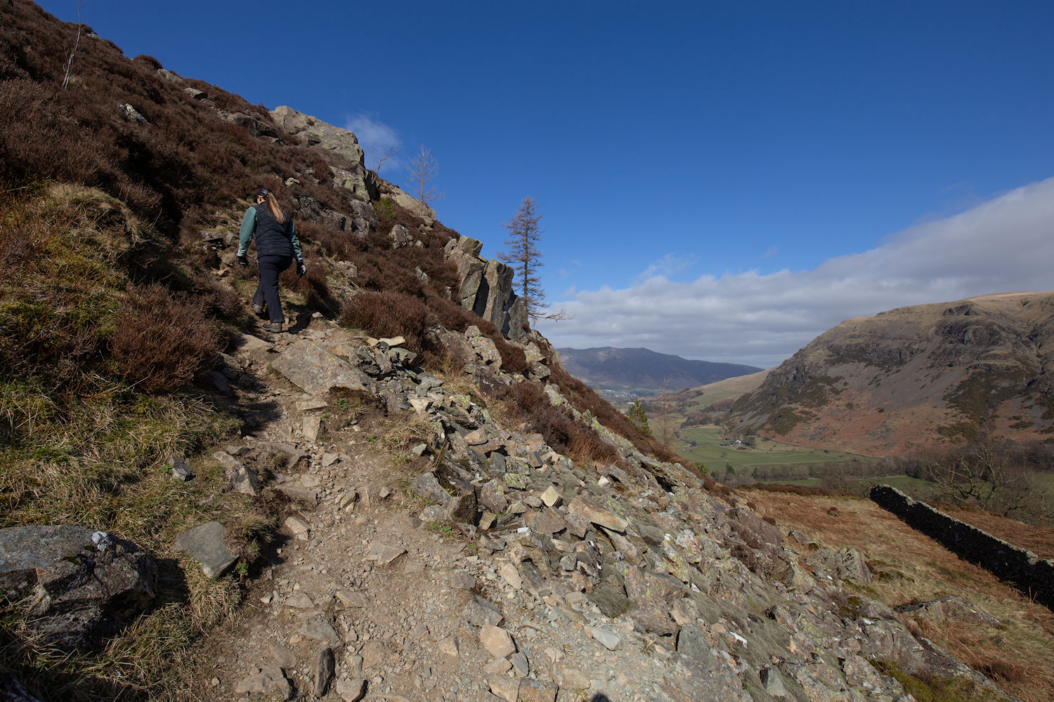 Heading up to Wren Crag but taking a look back to Great How and Raven Crag.