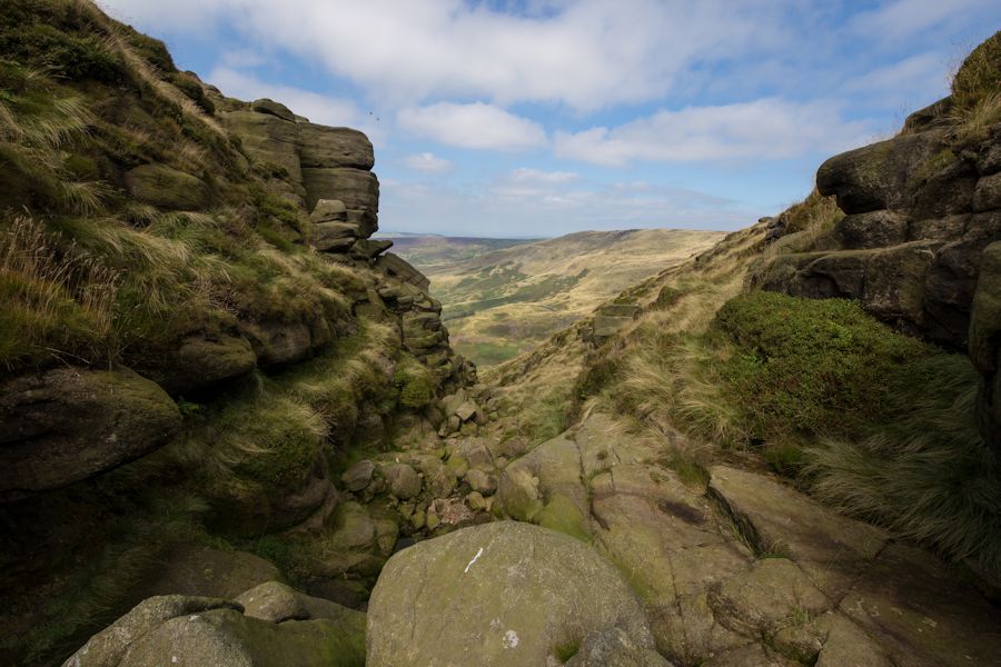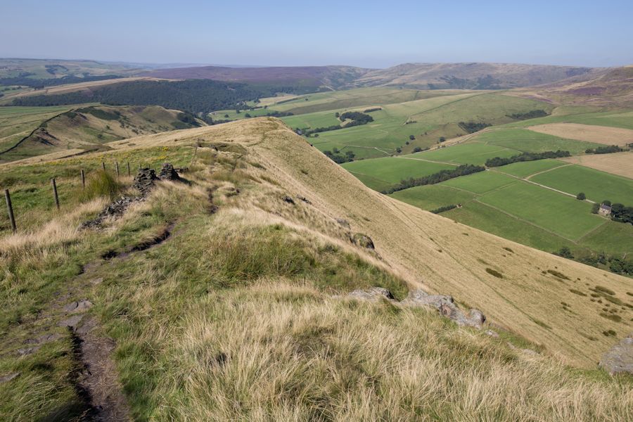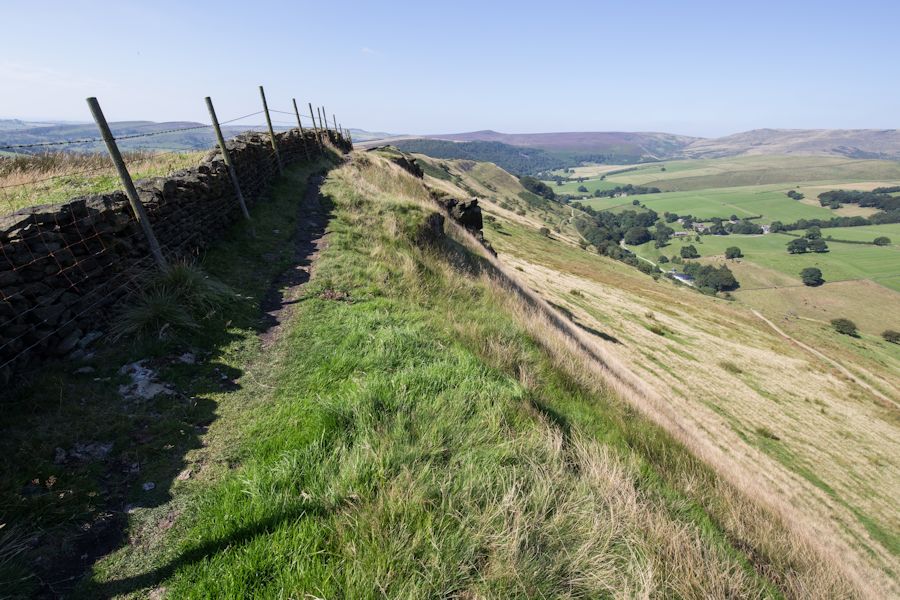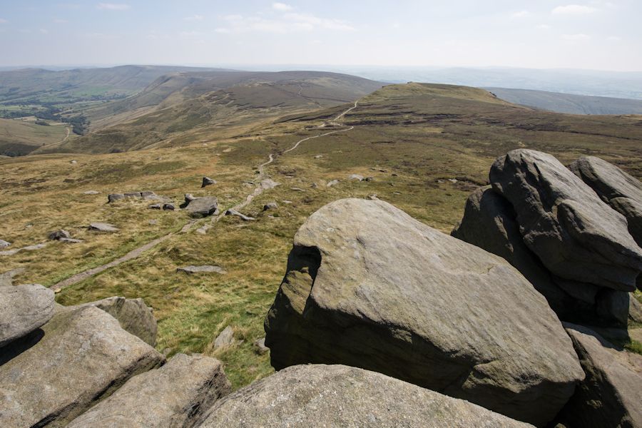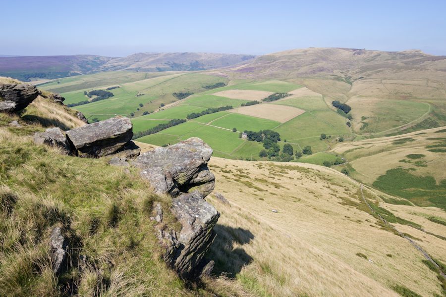 looking out from the top of edale rocks towards swine's back and down towards the vale of edale on the left.