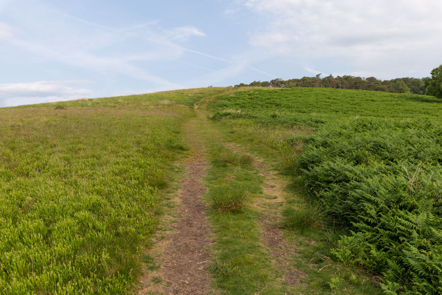following the narrow track up. It's a short climb up this peak but it's still a slog on a muggy morning.