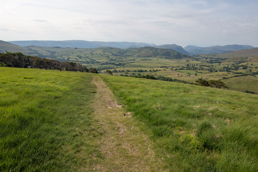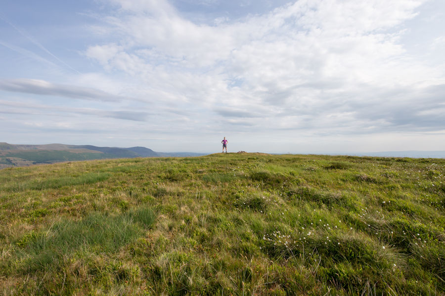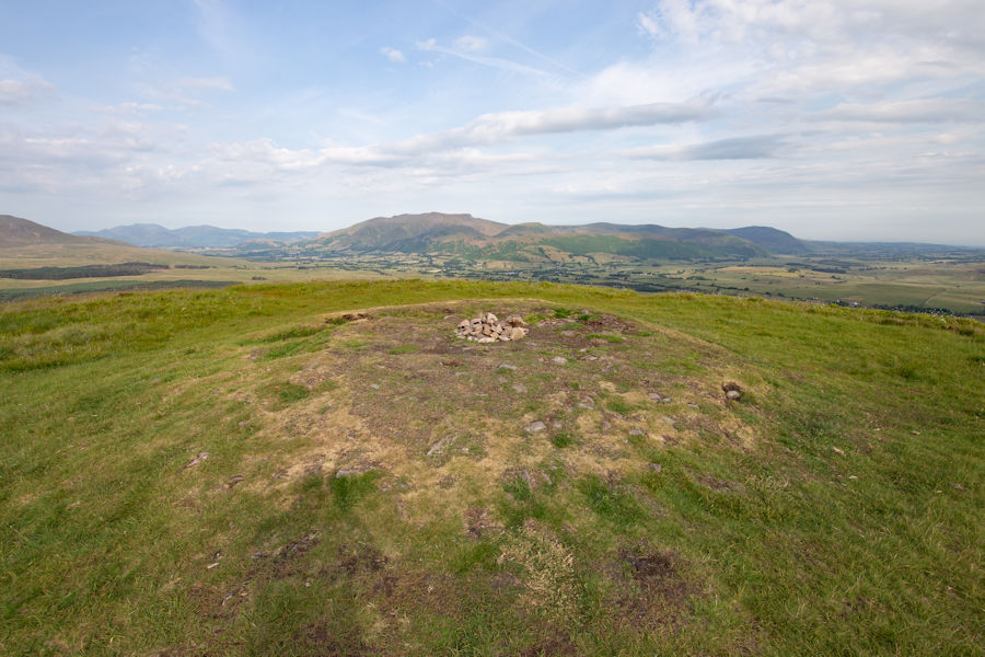 summit of great Mell fell. blencathra range in the distance