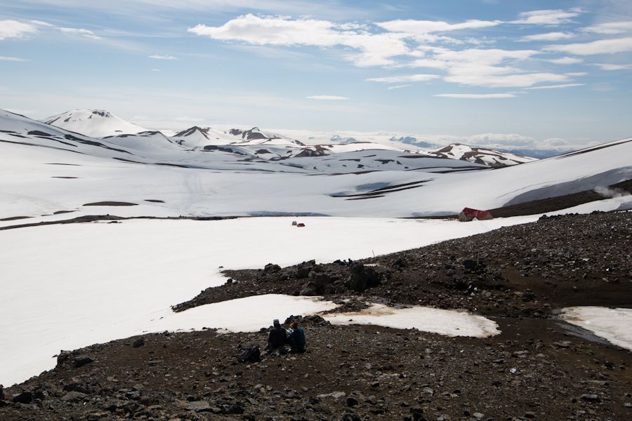 You can see the Hrafntinnusker hut in the background. we still had plenty of white ground to cover