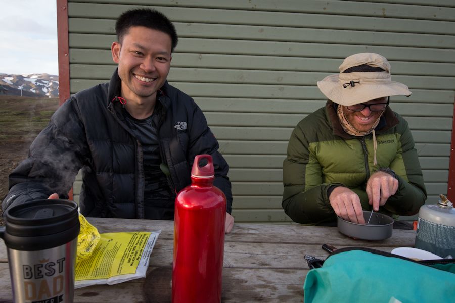 Lunch at Hrafntinnusker. This is our new friend shay.