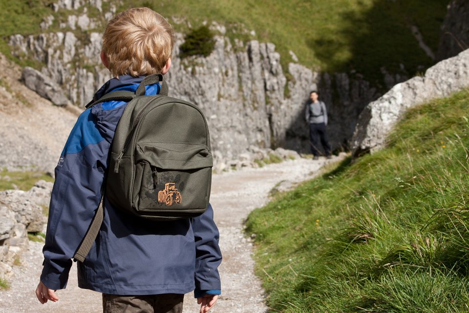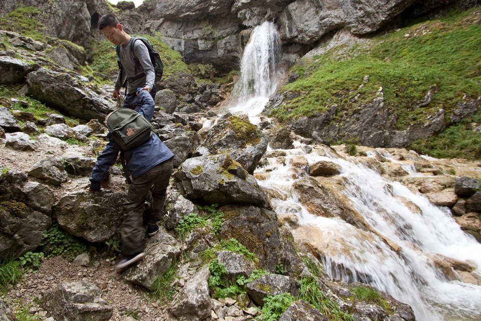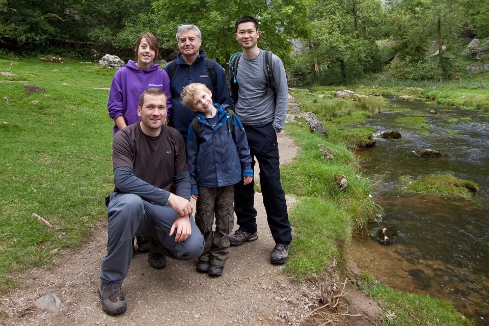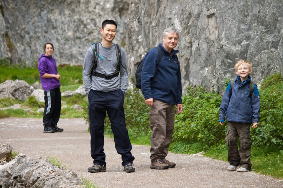 The upper section of the Gordale Beck falls. Alan giving Noah a helping hand.