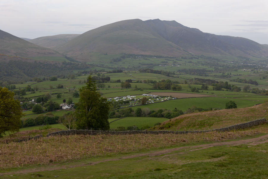 Castlerigg Farm Campsite with Blencathra in the distance.