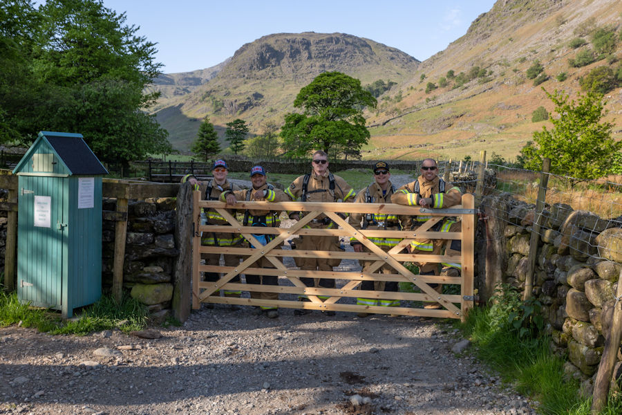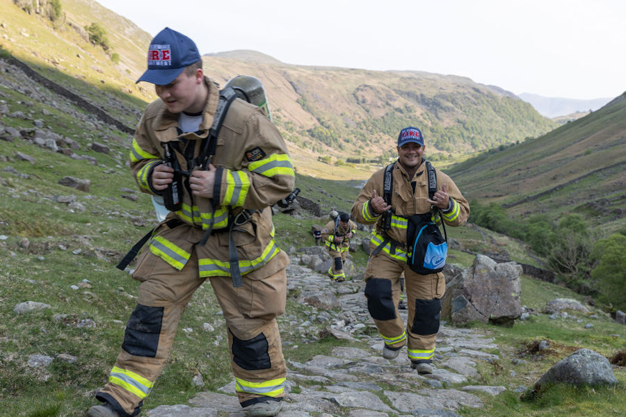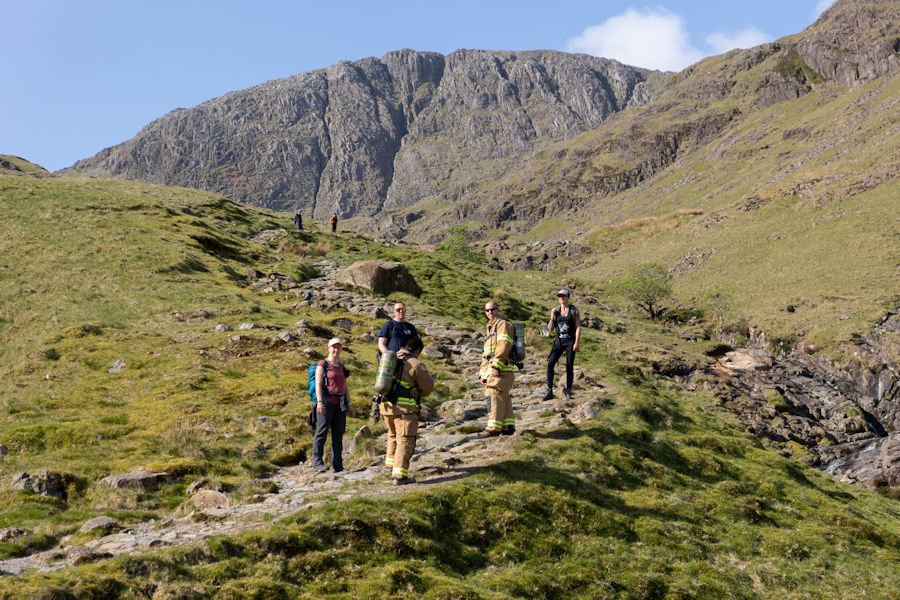 Last year we completed this chaLlenge and raised £2000 for east anglia air ambulance. This year, some more money raised and tougher conditions. just as we did last year, the challenge was to climb and descend scafell pike in full fire kit (minus boots) and carrying breathing apparatus. we hadn't seen anyone do this with b.a. sets on before.