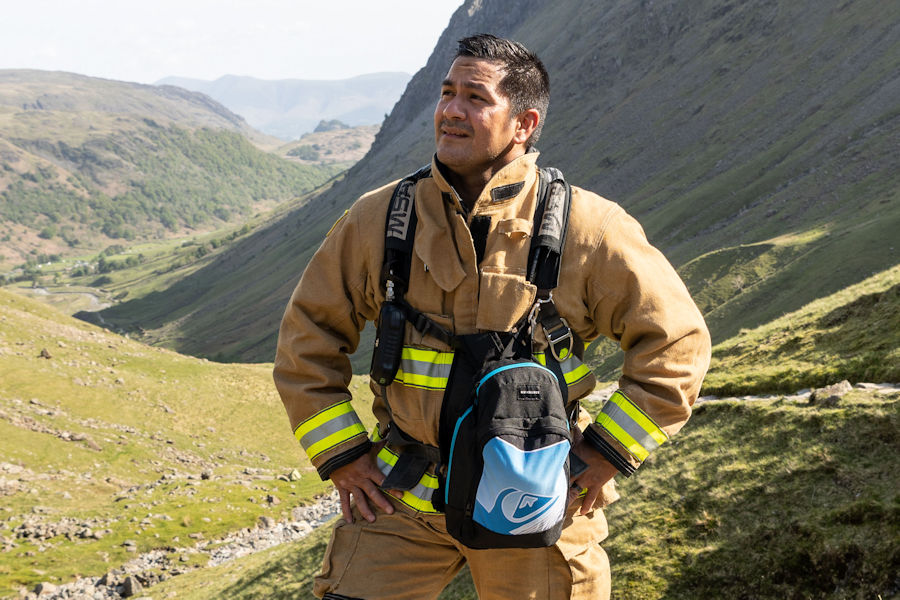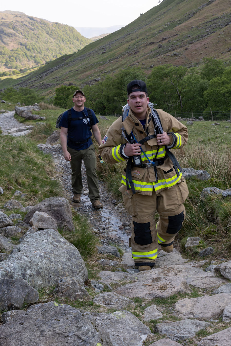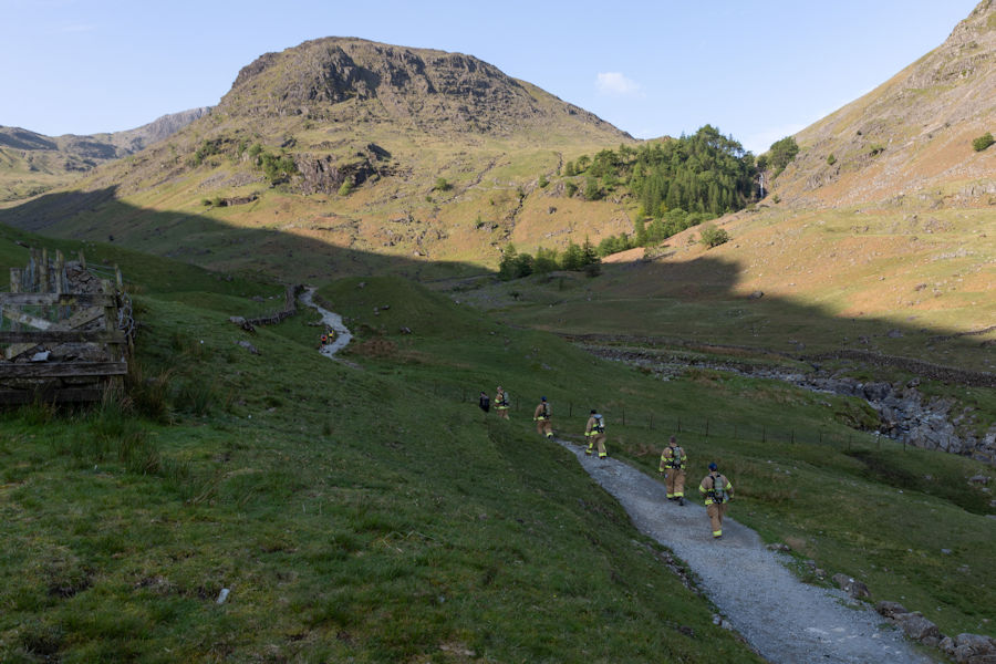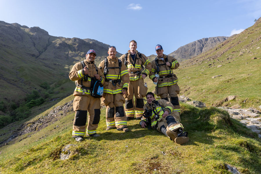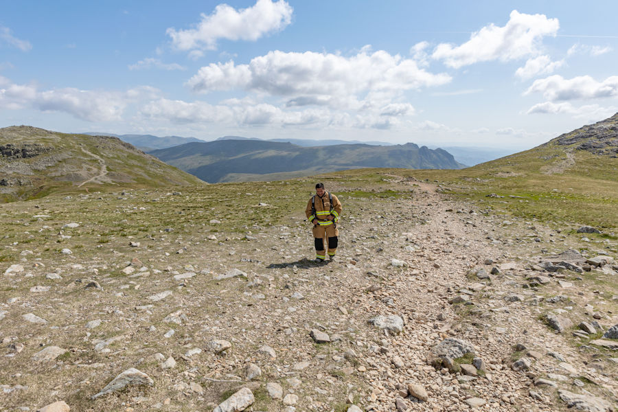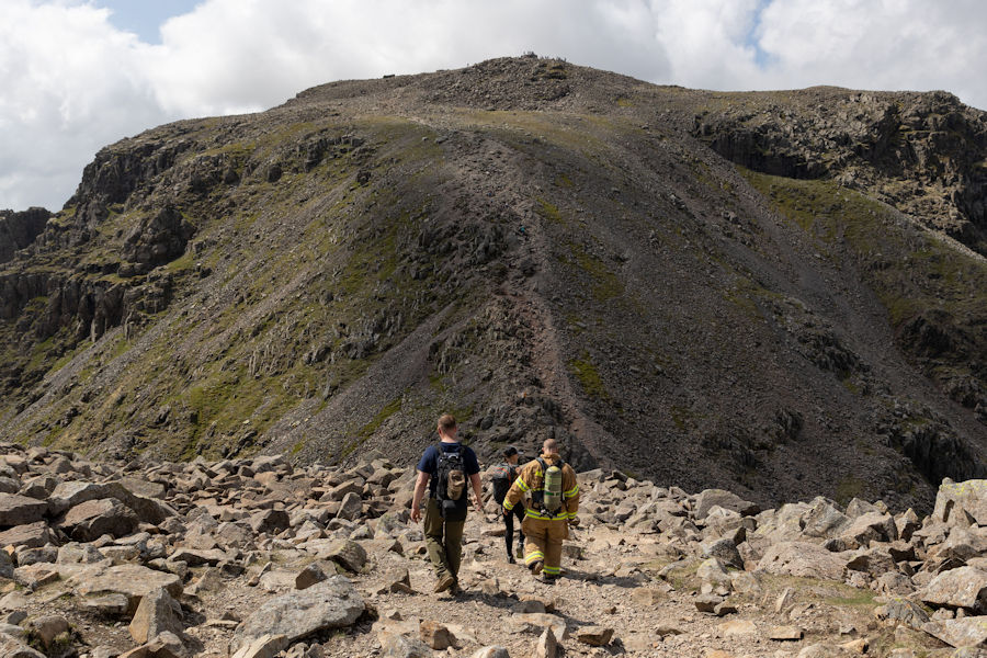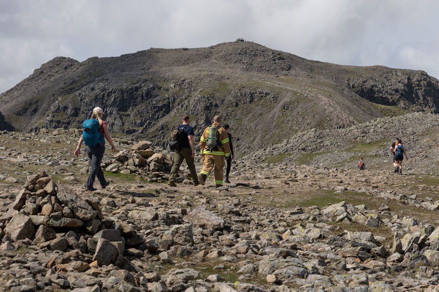 The drop from Broad Crag and the back up for the final push to Scafell Pike is hurty on a normal day. In firefighting PPE on a day like today it is brutal.