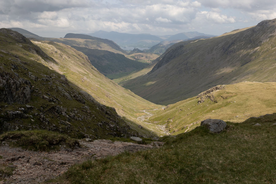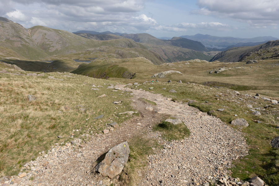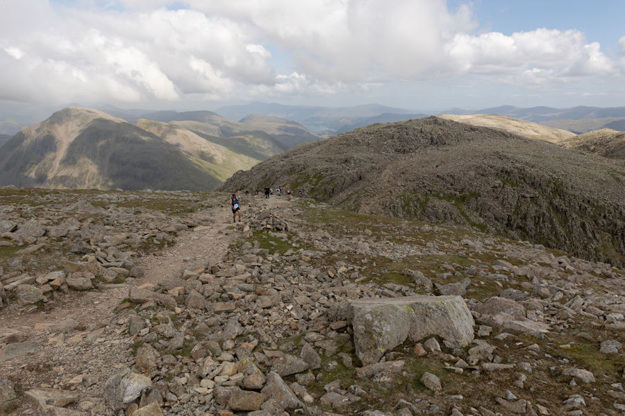 The plan now was for the Ryan with support to continue the planned route down the Corridor Route. I headed back with Catherine the way we came to meet back up with Nate who was resting near Great End. Broad Crag ahead.