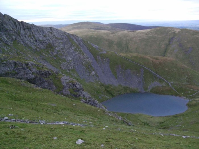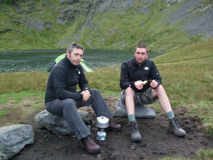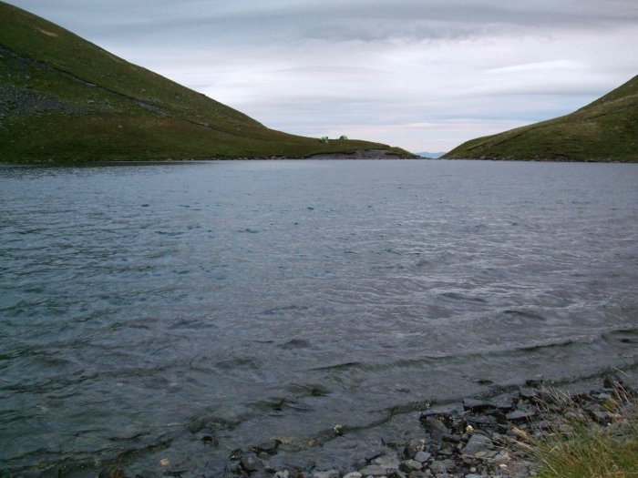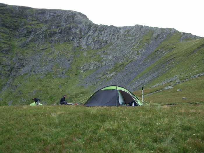 Looking down at Scales Tarn and our tents. Left:White Horse Bent - Right:Scales Fell