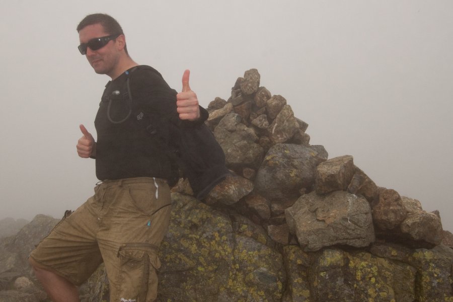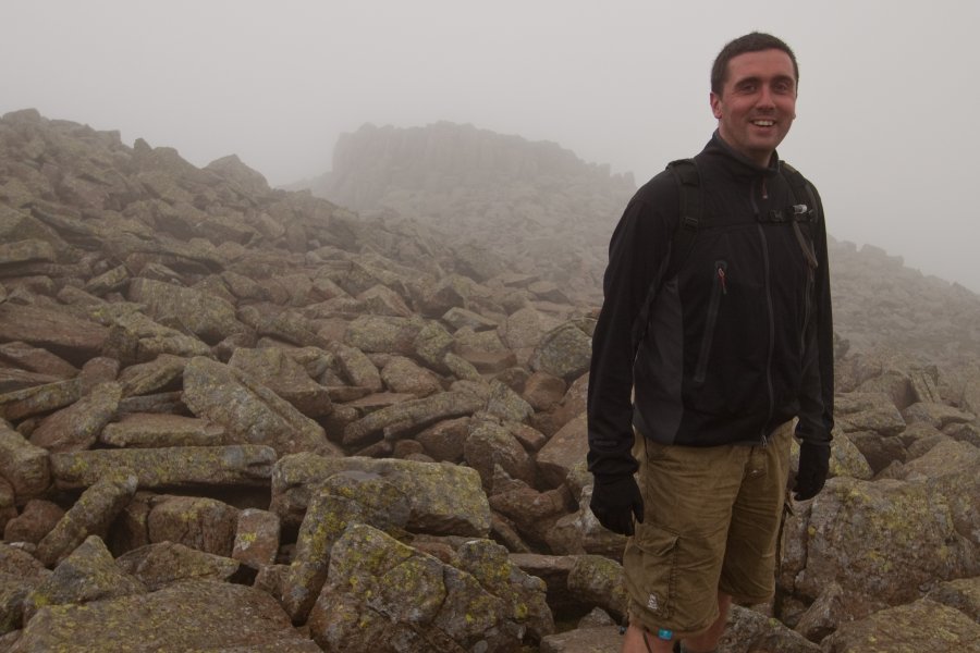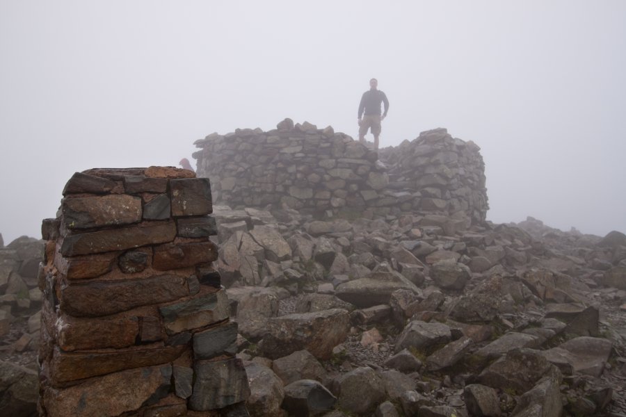 The final clamber up to the summit of Scafell Pike. It's there somewhere.