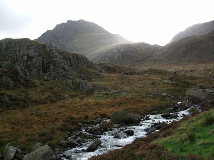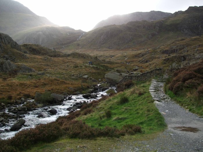 following the path along Cwm Tryfan