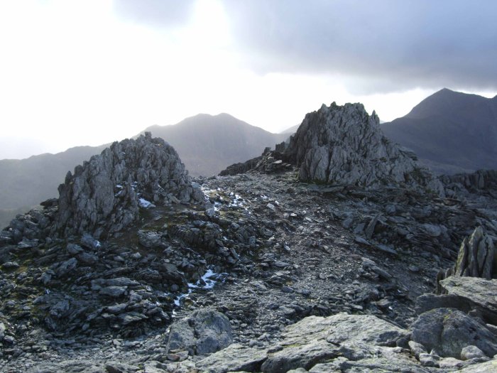 Back left is the summit of Glyder Fach and a fun obstruction