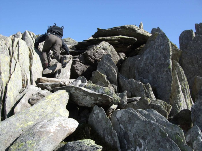A straightforward scramble over this chimney of sharp rocks