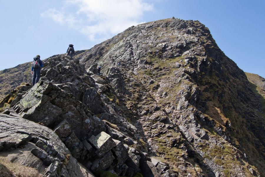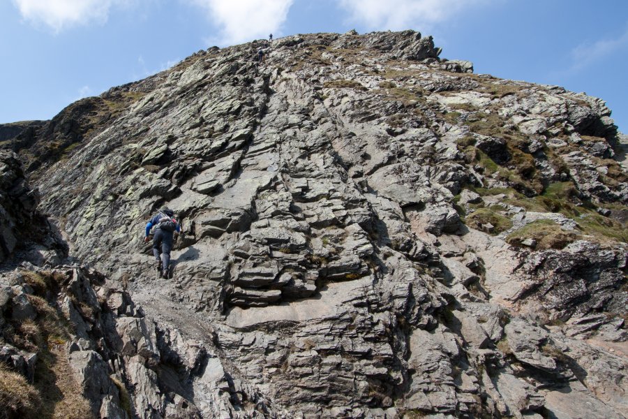 After a few short moments on the summit of Blencthra, we descended down Halls Fell Ridge. This was certainly an interesting way down, littered with scree, jagged edges and the occassional light scramble. It seemed to take a really long time to get down it. It's really not straight forward but it is good fun and looks dramatic. Once at the bottom we followed the path up the back of Doddick Farm over to Scales Farm and back to the car.