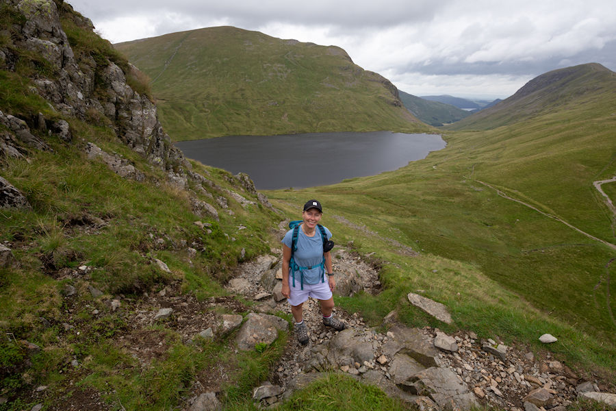Arriving at the car park for the start of the walk, I shut down the car to a load bang and a jolt forward. My handbrake module had failed! With not much else I could do, secured the car and set off for a hike. The plan was to stay another night but now those plans had to change. Today's hike was for myself to bag one Wainwright, but Catherine would get 3. As often the case, we started with a pretty steep ascent, gaining height quickly with great views. We stopped for a while at Nethermost Pike to take in the view across to Striding Edge and then the equally great view from Dollywagon Pike down to Grisedale. Next up, a very steep descent, a real thigh burner down the south slope of Dollywagon Pike to Grisedale Tarn. The climb up Seat Sandal included some light scrambling with more great views at the summit and the descent, although required a lot of concentration, was very enjoyable.