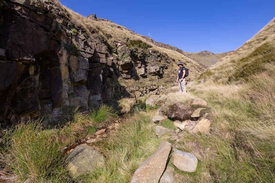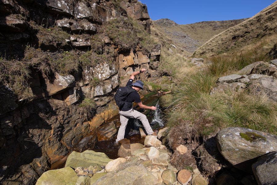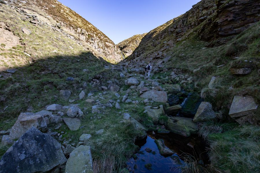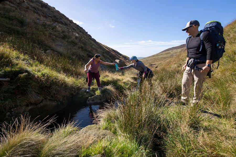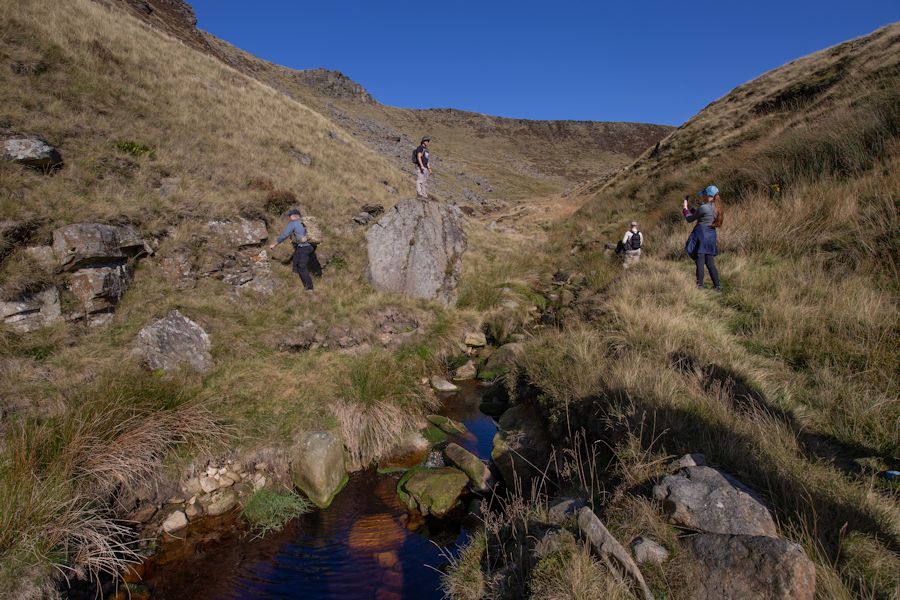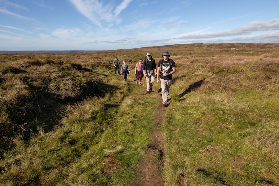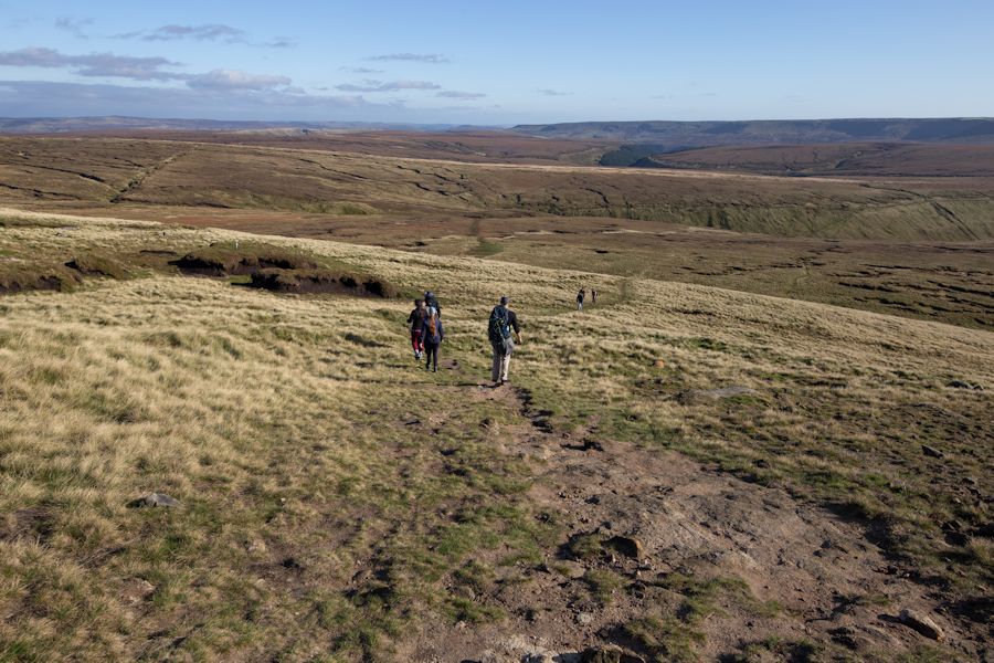 HEADING THROUGH THE PEATY MOORLAND. THE TERRAIN UP ON BLEAKLOW IS PROBABLY THE MOST RUGGED IN ENGLAND.