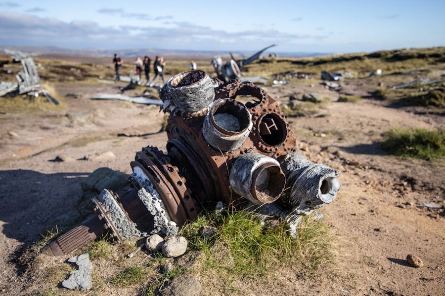 today i'm outnumbered as the only brit on the hike, I've got some friends along from the fire department who have never been to the peak district before. Now what can i offer them that has features which will have particular interest to them? How about a U.S. military aircraft crash site?