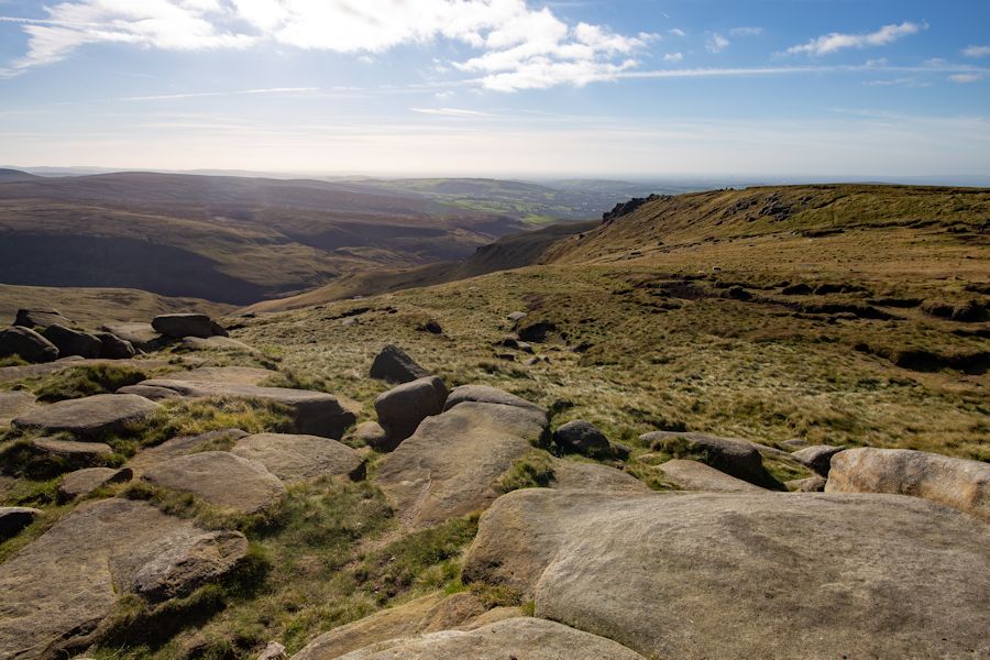 THE VIEW FROM HIGHER SHELF STONES. WE WERE REALLY LUCKY WITH THE WEATHER TODAY AND THE DRY CONDITIONS UNDER FOOT. BLEAKLOW CAN BE VERY DIFFERENT A LOT OF THE YEAR. i'VE ALWAYS WONDERED IF THE USE OF 'BLEAK' WAS DESCRIBING THE LAND.
