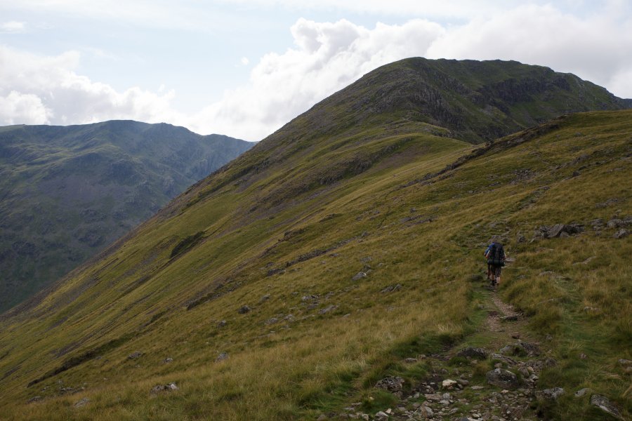 the route through Mosedale and along black sail pass was gradual and a decent path all the way up to looking stead. apart from a couple of mountain bikers we didn't see anyone else. It's always nice to feel like you have the mountain to yourselves. approximately 700ft beyond looking stead comes the choice of two routes. the direct route straight up to the summit or cutting right and joining the high level route.
