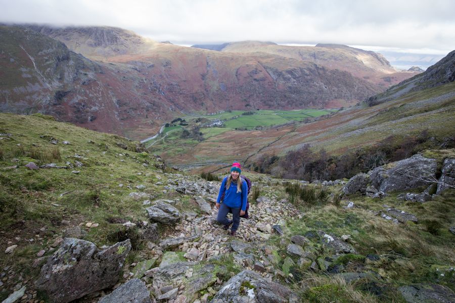 we took the ascent route following hind gill. view out to taylorgill force